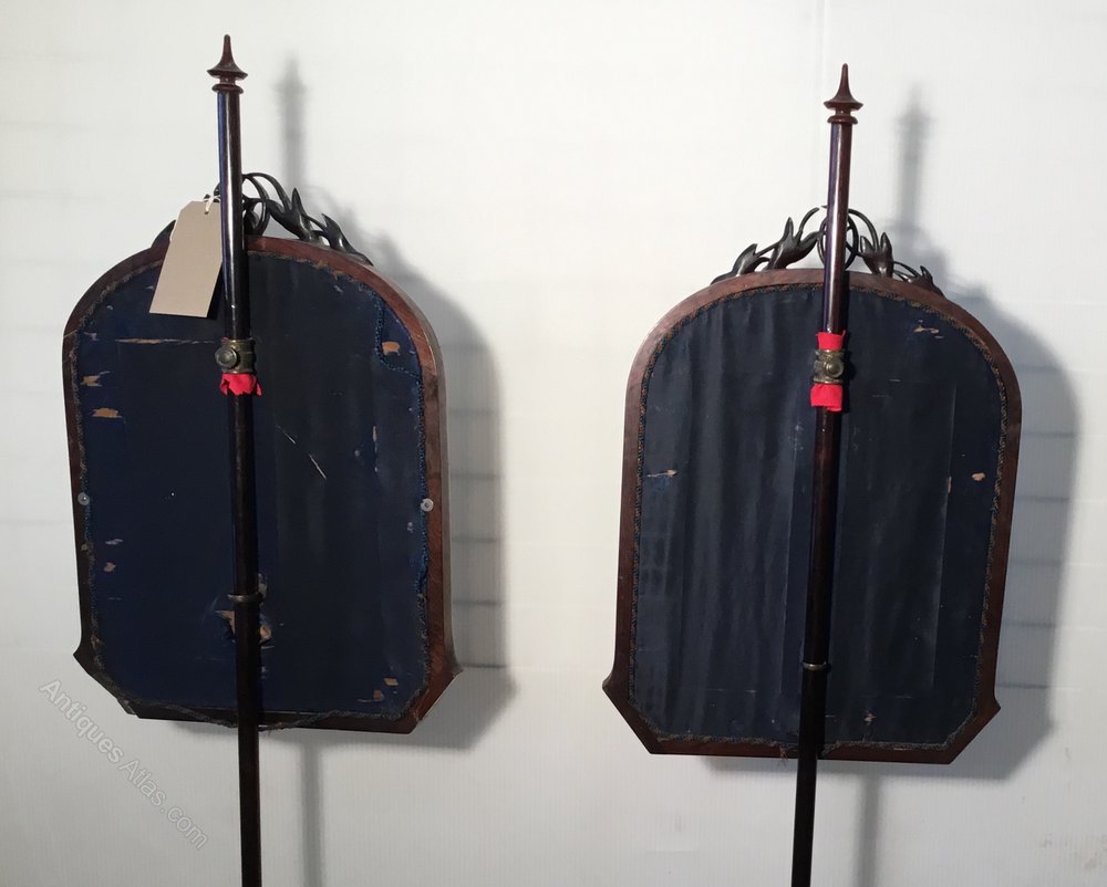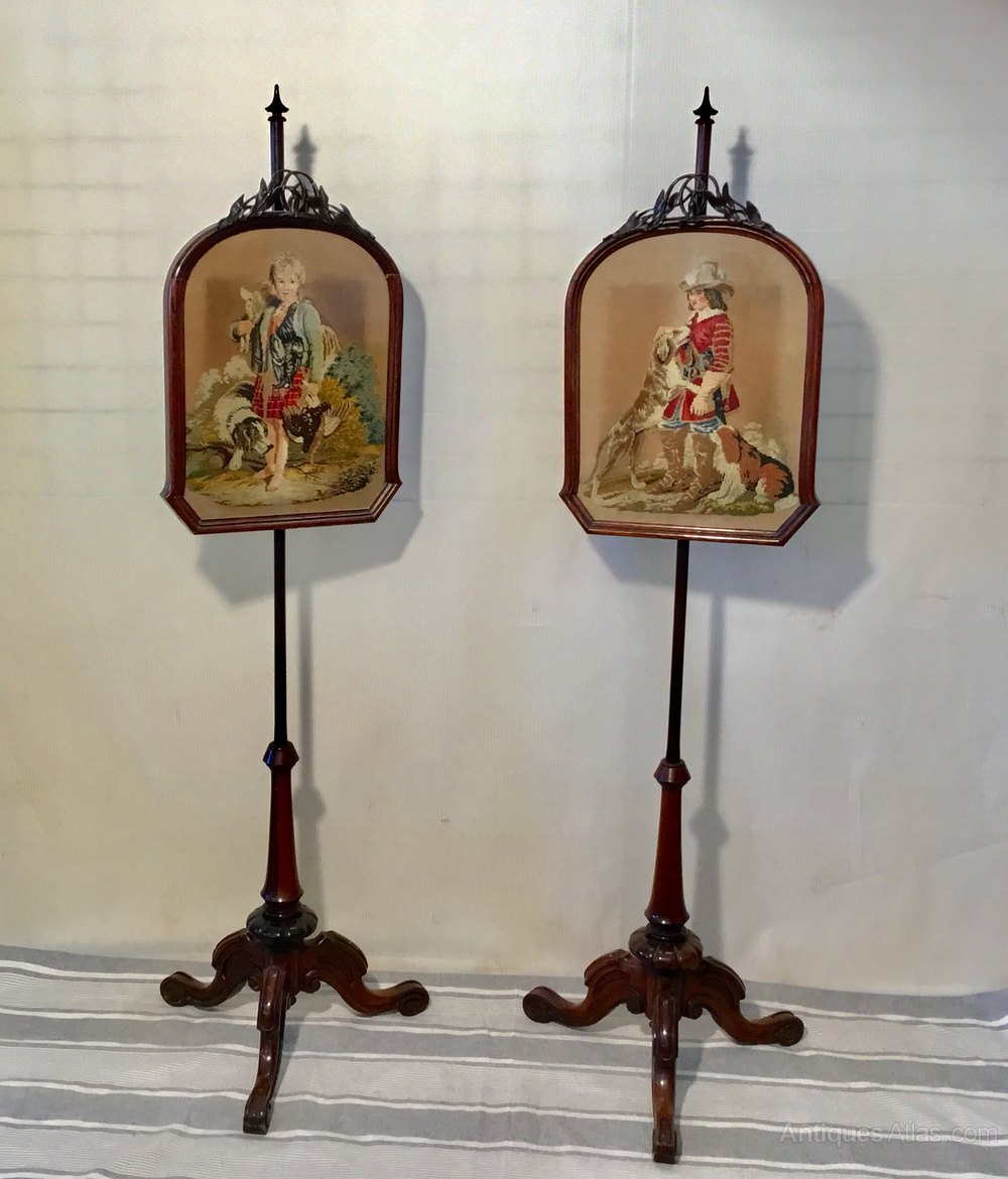A pair of Victorian pole screens, with finely carved cabriole legs.