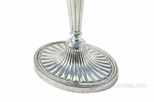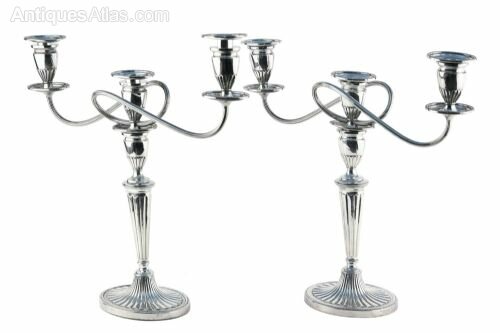 Large Pair Of Quality Antique Victorian Silver Plated Candelabras with three light twin branches candelabra tops supported by a tapering reeded column on an oval shaped reeded base.