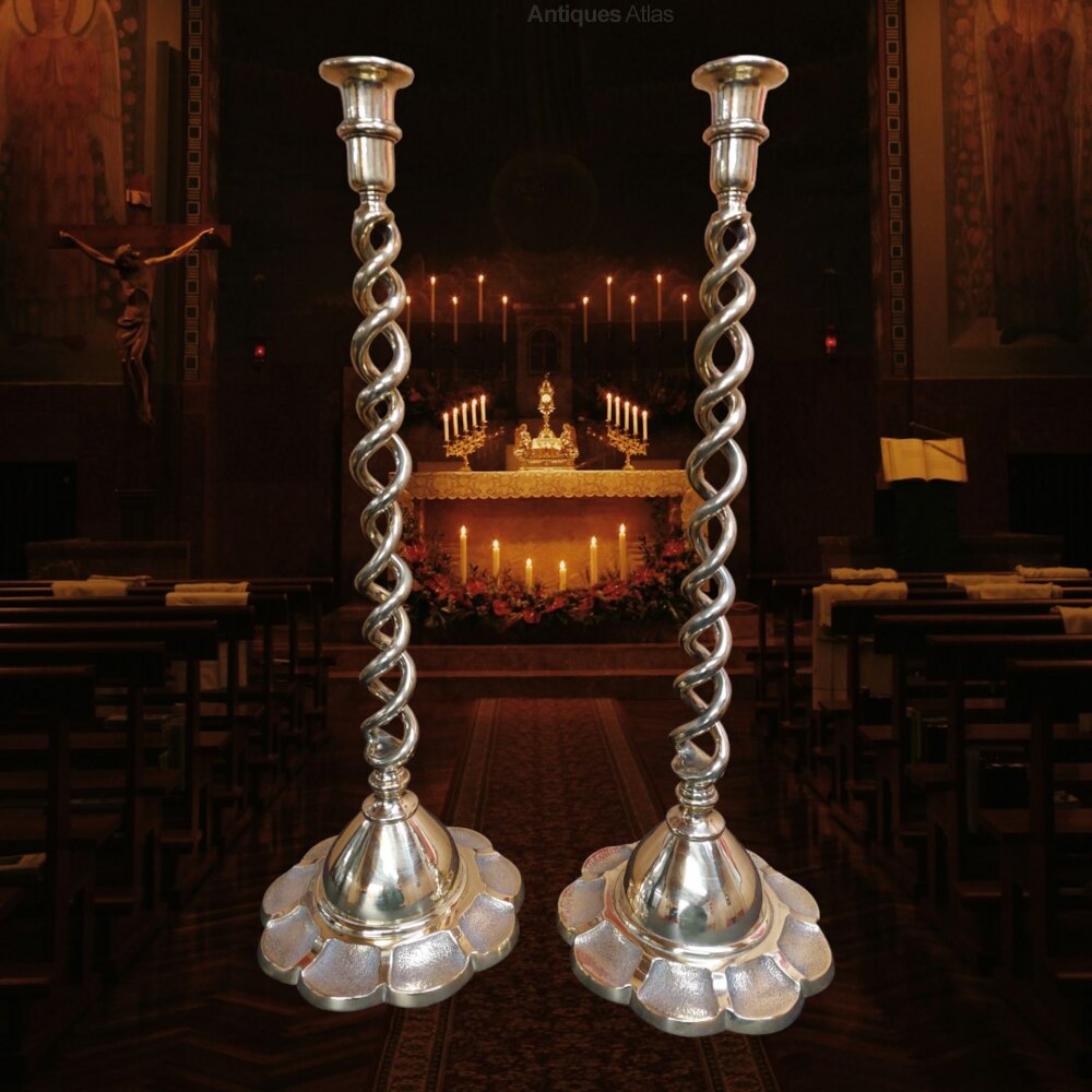 Pair of Tall 19th Brass Barley Twist Candlesticks
