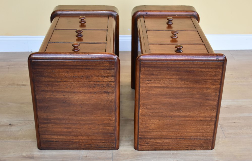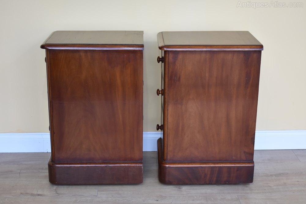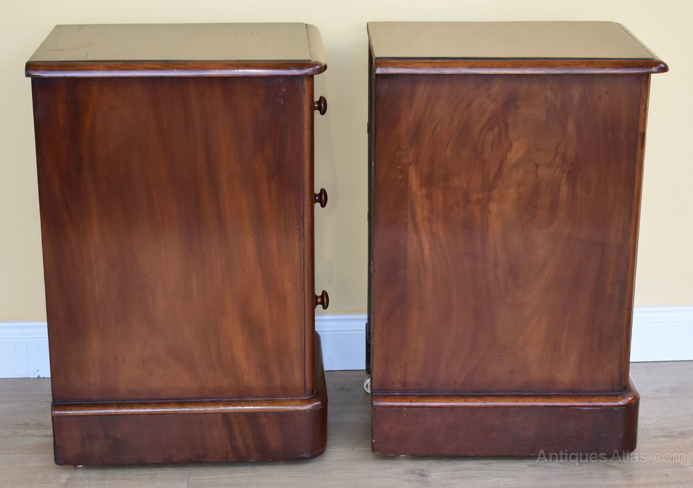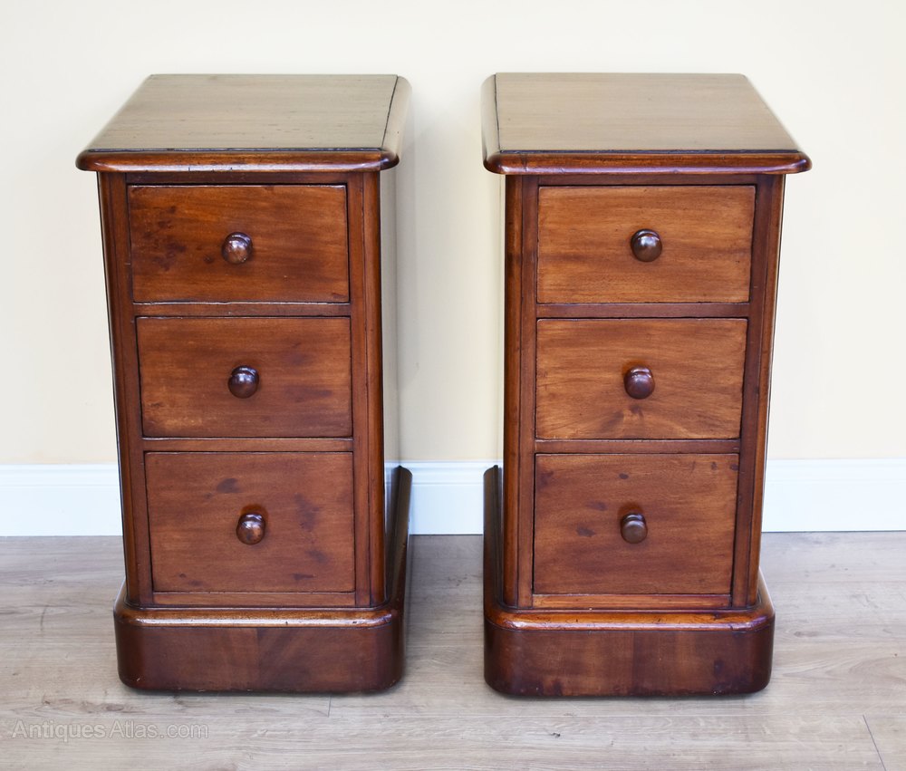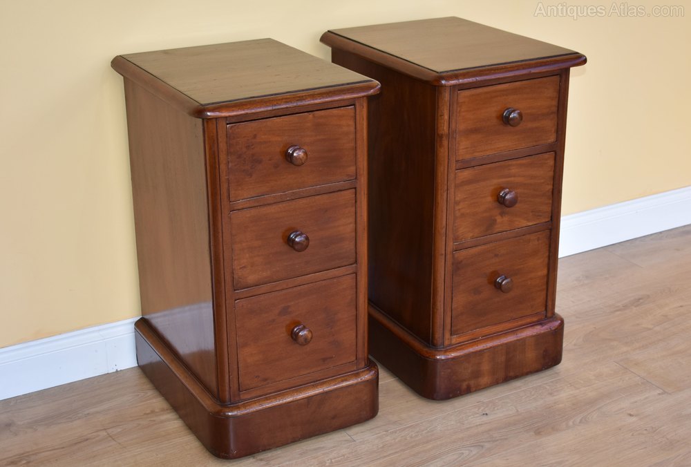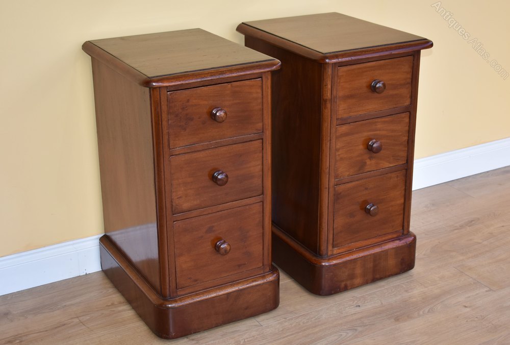 Pair Victorian Mahogany Bedside chests in good condition having recently been polished by hand. Each chest has three drawers with turned handles on a plynth base.