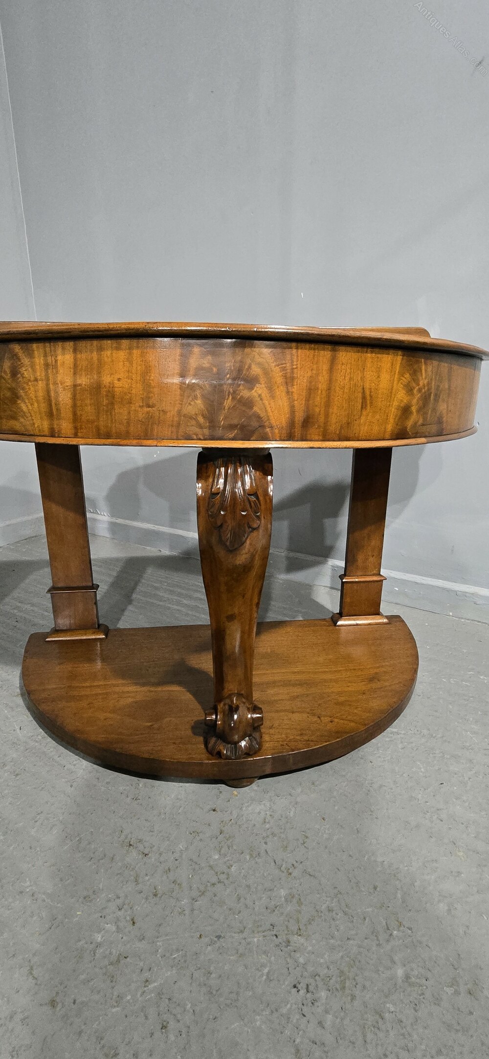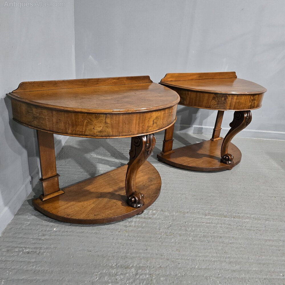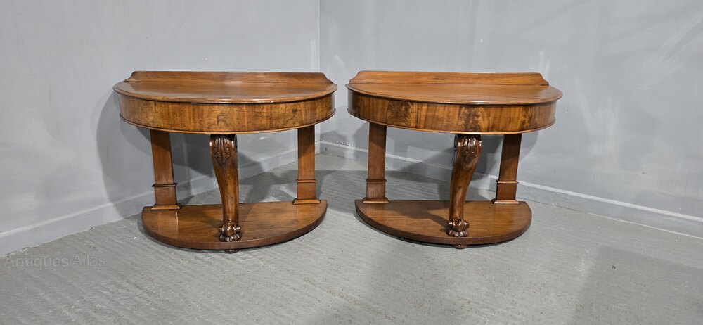 A very nice pair of Victorian demi loon console tables with single lions leg to the front, in overall very good original condition.