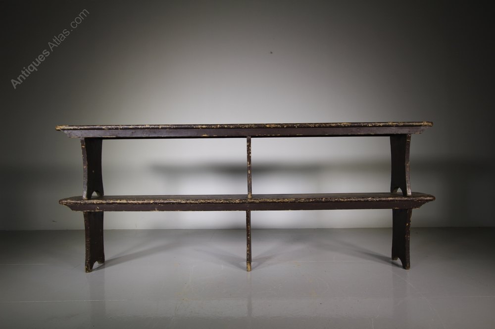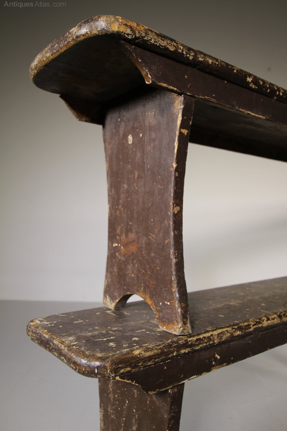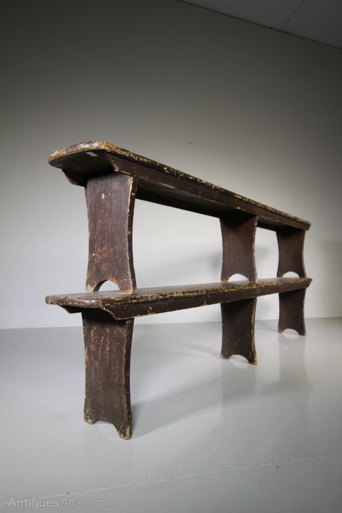 Pair Victorian Oak Dining Table Pew Seats Benches