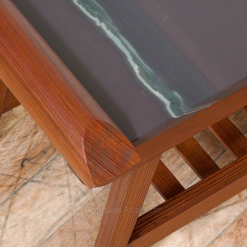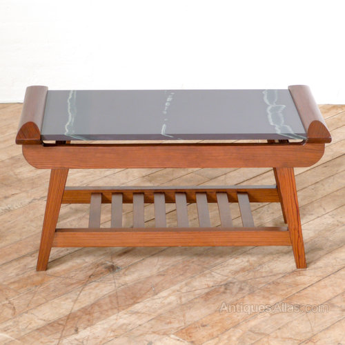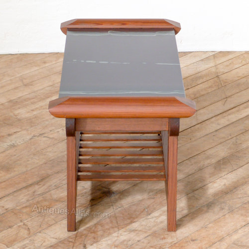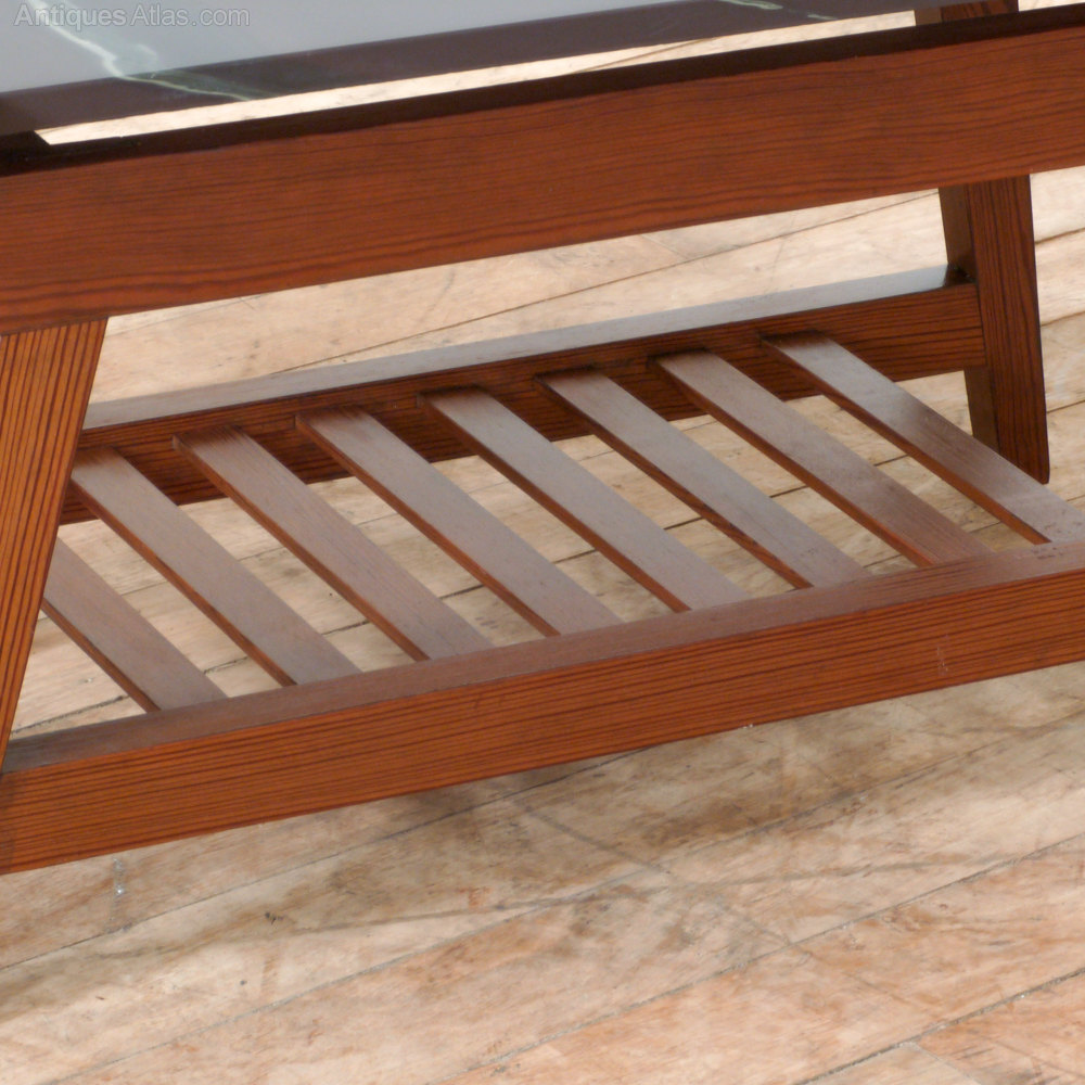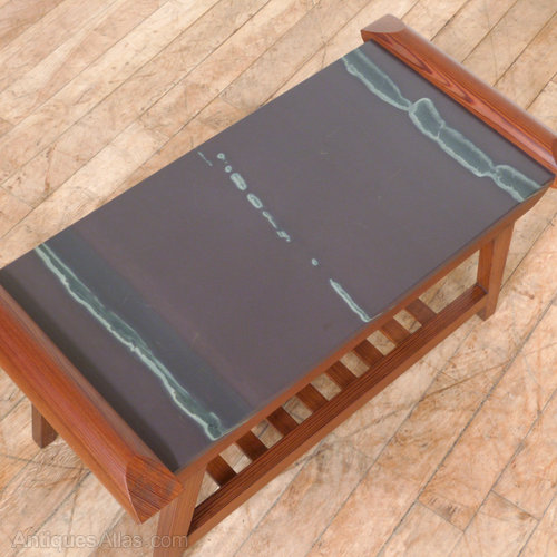 A small and very unusual 1960's pitch pine and marble coffee table. Craftsman made, with very distinct marks to the marble top(dark grey, almost like slate in colour with green veins running through). This piece may well have been commissioned as we have never seen another like it. In excellent condition this is a great piece of 1960's styling with a rare twist.