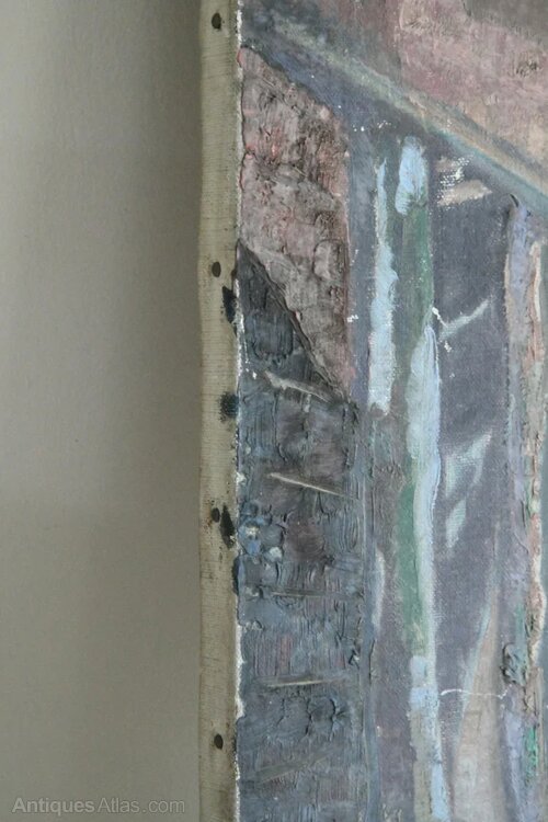 Condition Some age and losses to the paint and around the outside edge of the canvas