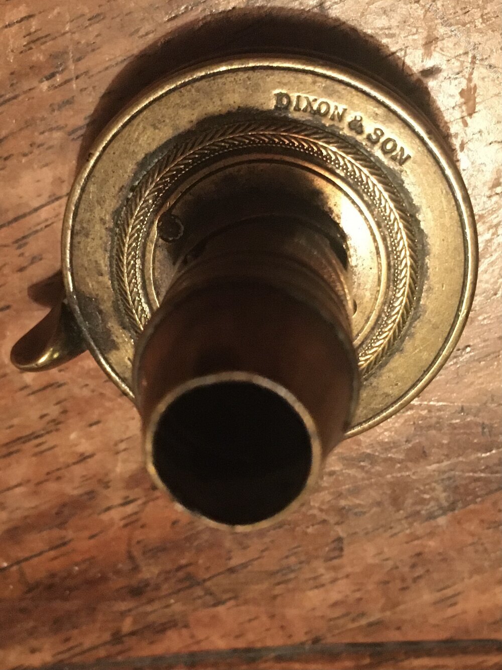 A very nice copper flask by Dixon full working order return spring strong nice age patina top unscrews smoothly just good used condition uncleaned unrestored
