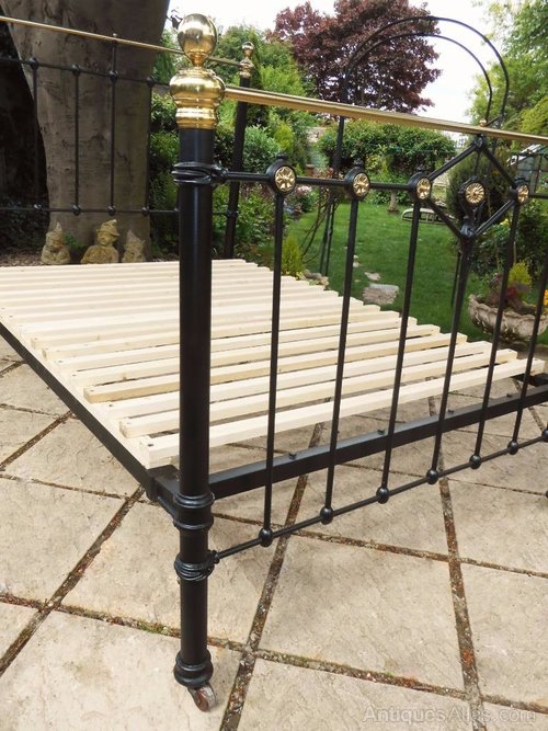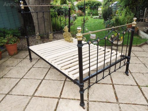 This is a really pretty Victorian brass and iron double bed dating from around 1870 in super order. The bed has a most lovely design with decorative brassware in beautiful clean condition. The bed has it's original side irons and comes with a timber latt base so simply requires a standard double mattress.