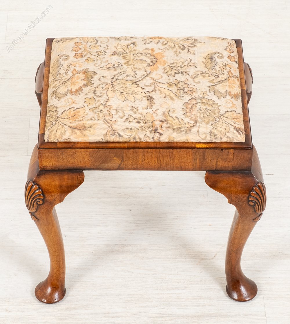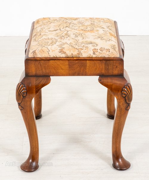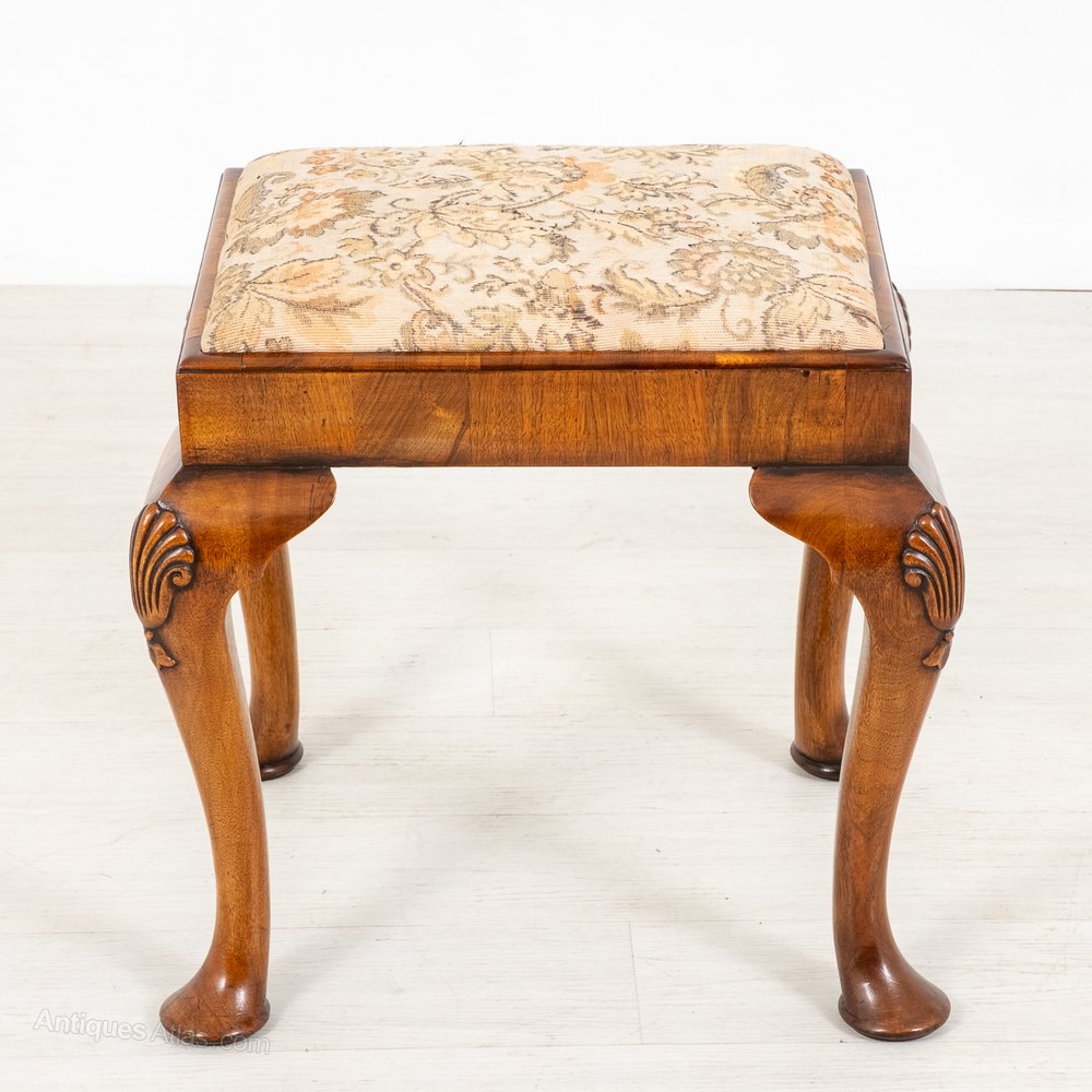This Quality Stool Stands Upon Cabriole Legs with Pad Feet and Carved Shells to the Knees (Typical of the Queen Anne Style)The Stool has a Pop Out Upholstered Sea.