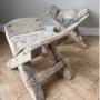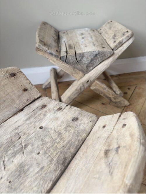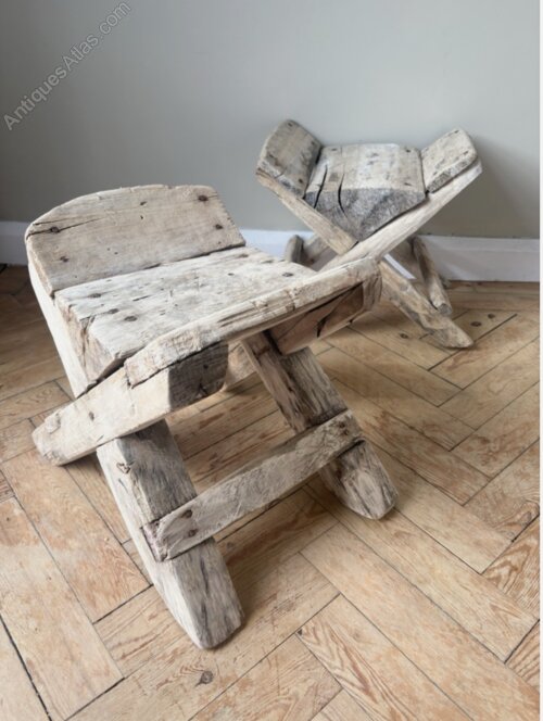 Selling individually, these fabulous primitive stools are old working stools from the Turkish mountains. Rustic in every sense from greying dry solid elm timbers with pin built sturdy construction. Thick chunky timbers with gnarled edges , grooves , scrapes and notching give these wonderful pieces their individual charm. Great little surprisingly comfortable stools or fill them with logs for the burner giving you that decorative accessory beside the fireplace.