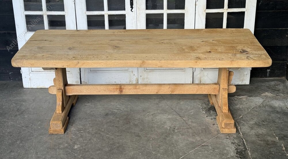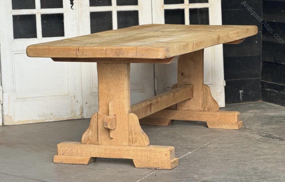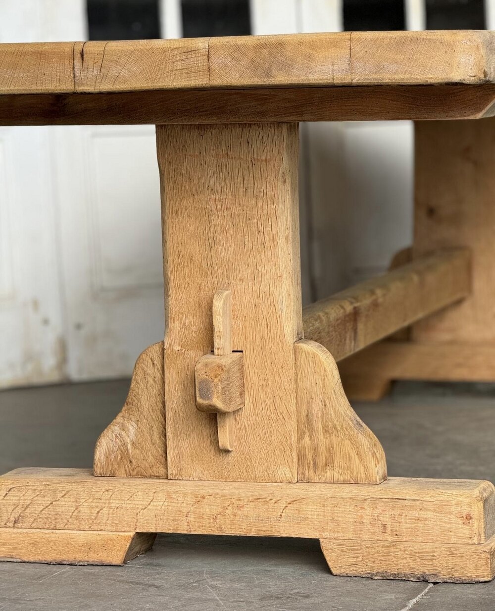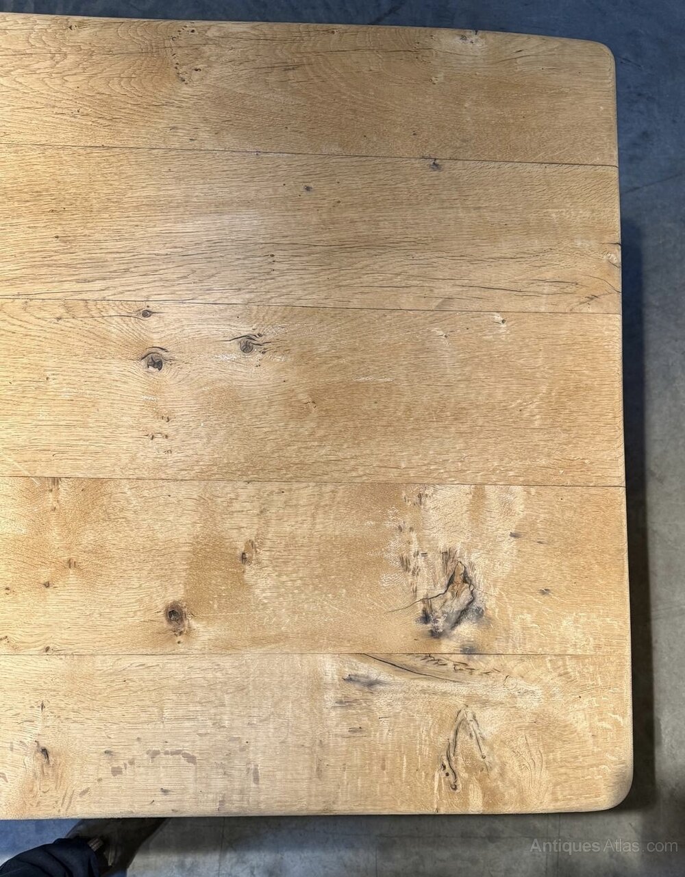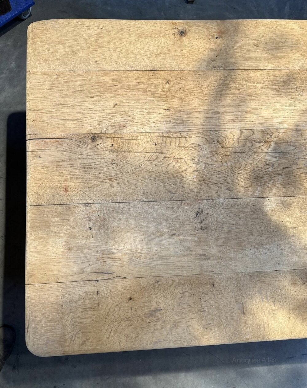 A very good quality Oak Farmhouse Dining Table. French in origin and dating to the early 1900s. Good construction this table will be around for generations to come. We have bleached it for a lighter look and it completely comes apart for easy access into the home. In overall excellent original condition.