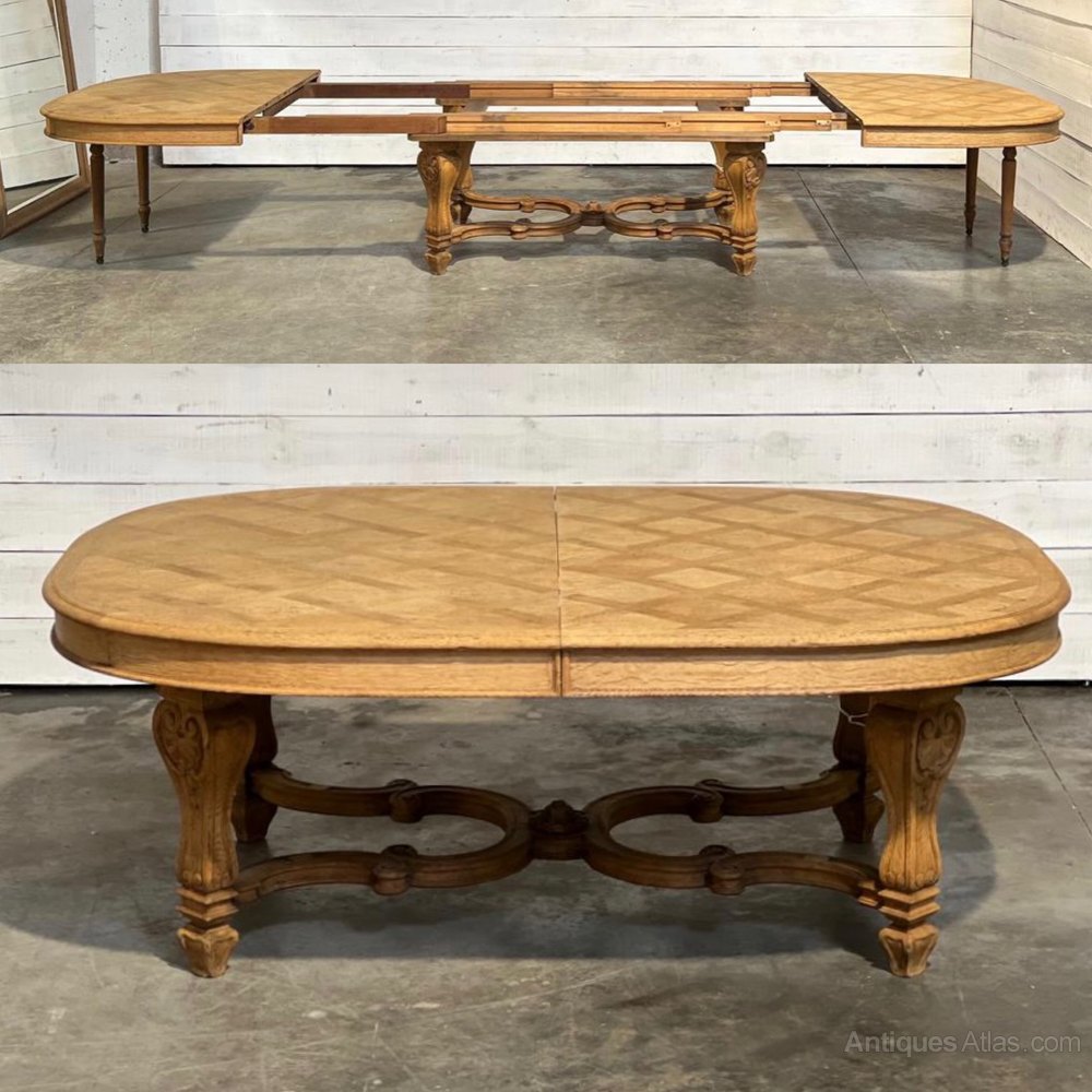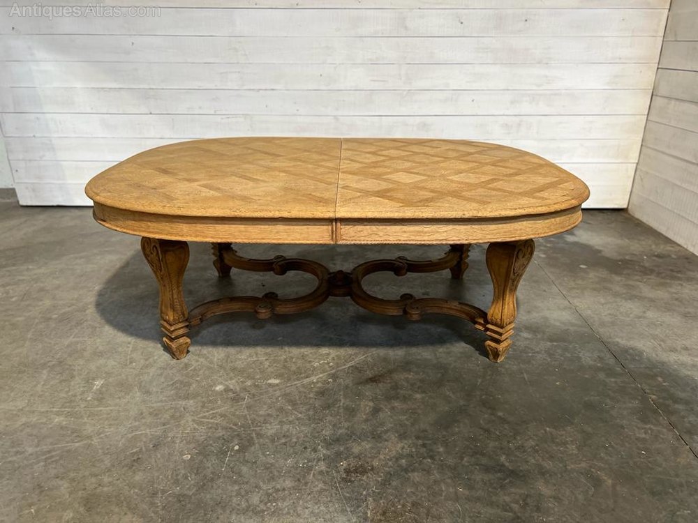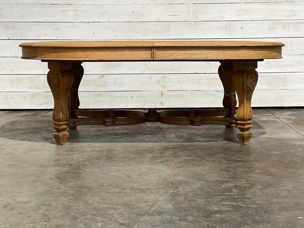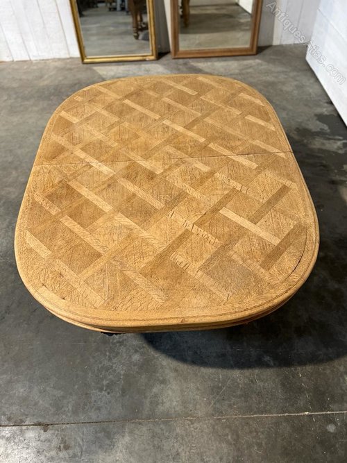 A fabulous Large French Dining Table. Made from Oak and dating to the 19th Century. Superb Quality heavy construction and it will take extra boards to extend it if you required. We have bleached it for a lighter look.