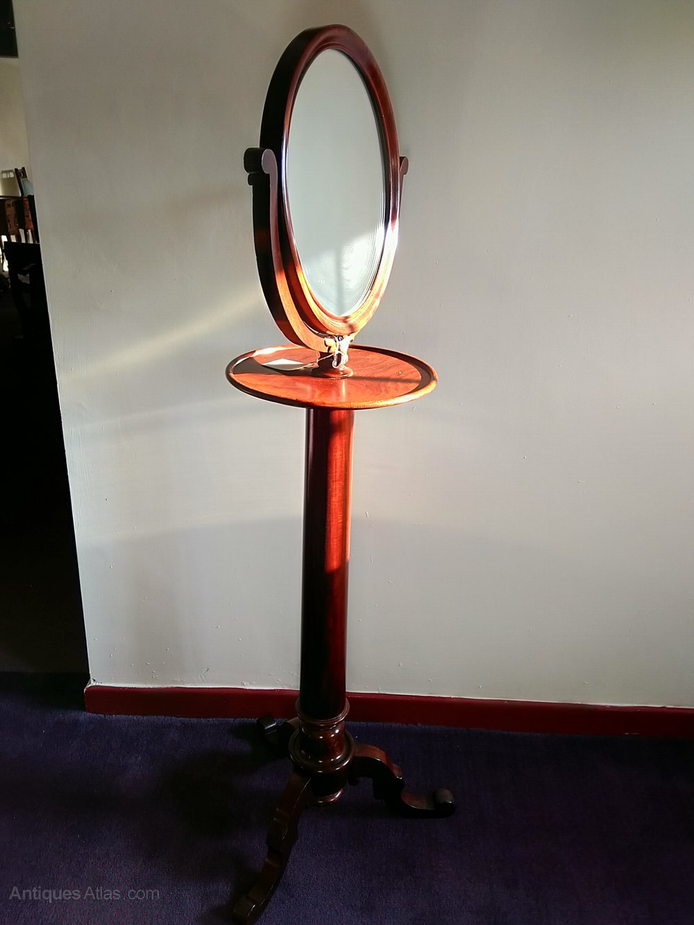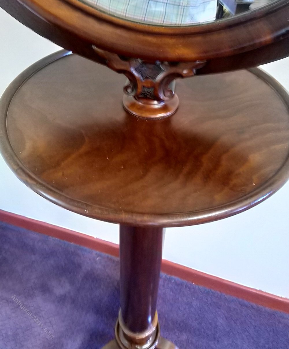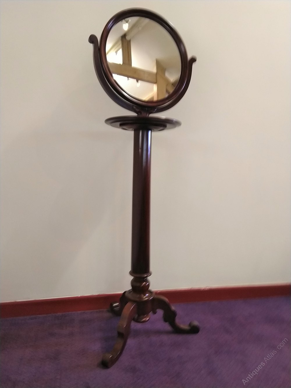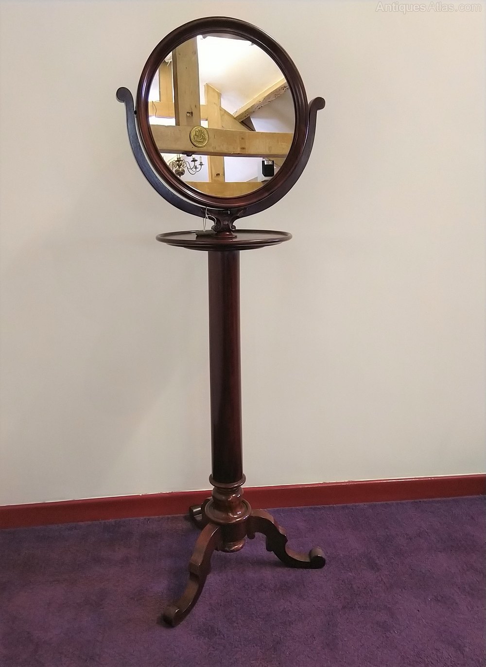 In lovely condition this mahogany shaving stand dates from the 1800s. Superb quality grain and colour set this apart from lesser models and the price is really competitive. The virtully perfect circular mirror rotates and tilts so it can go into almost any position you might want. The simple but quality pedestal sits on a great looking shaped leg. To discuss give us a call.