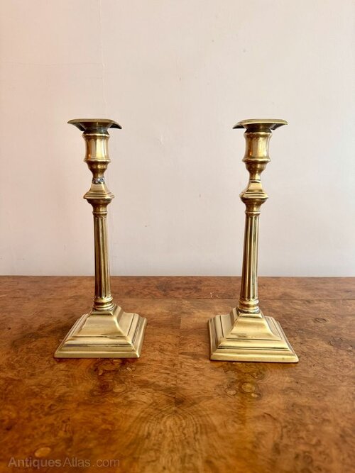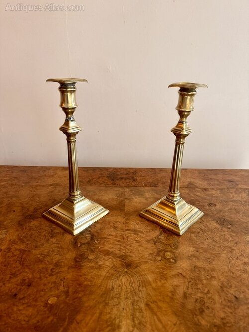 Pair of antique George III brass candlesticks