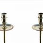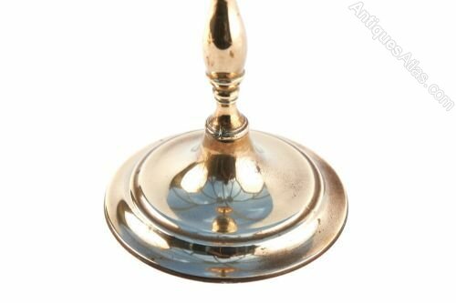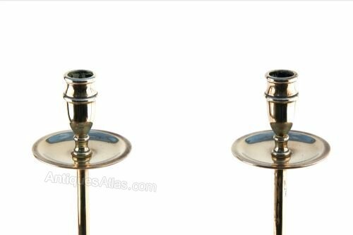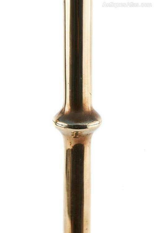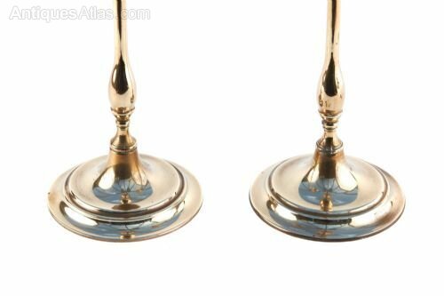 Quality Pair Of Tall Antique Brass Candlesticks, good quality sticks with drip trays, slender stems raised on a circular stepped base.