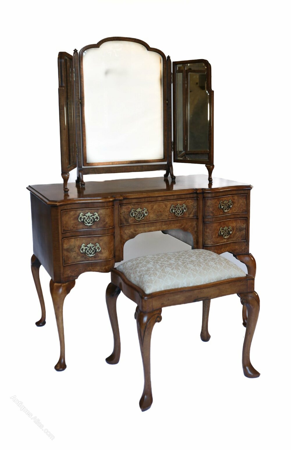 Queen Anne Burr Walnut Dressing Table circa 1930s