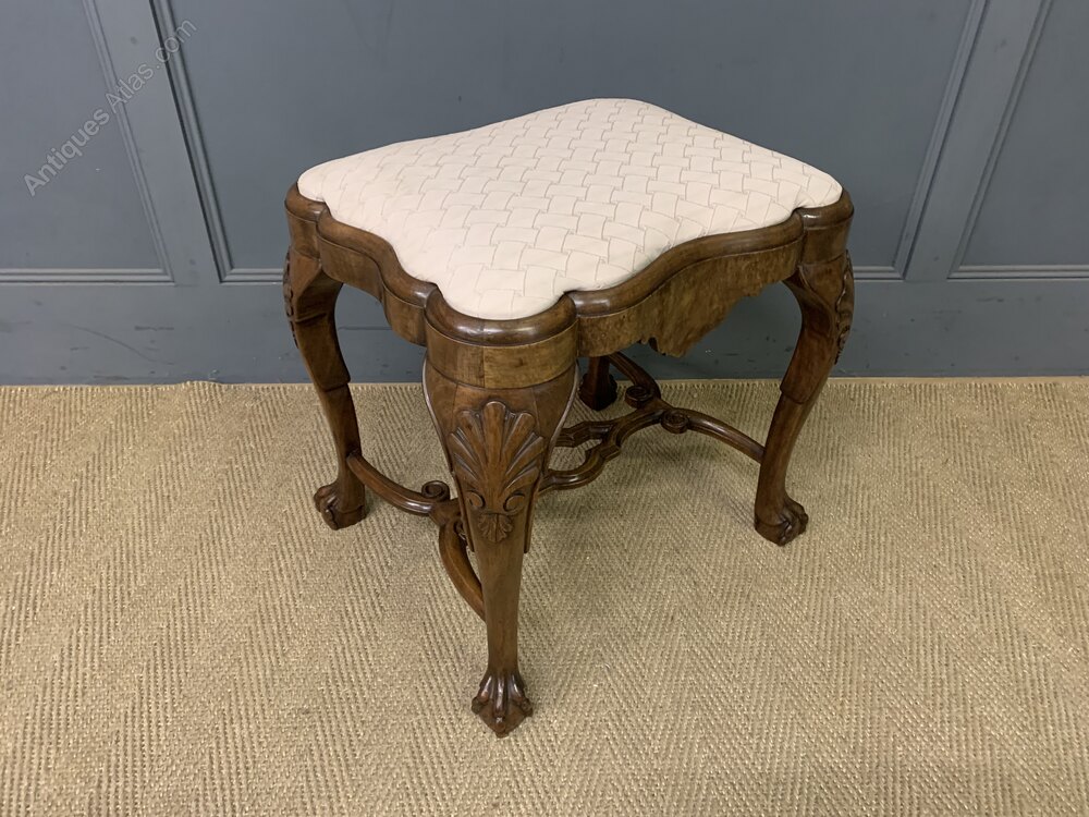 Queen Anne Style Burr Walnut Stool