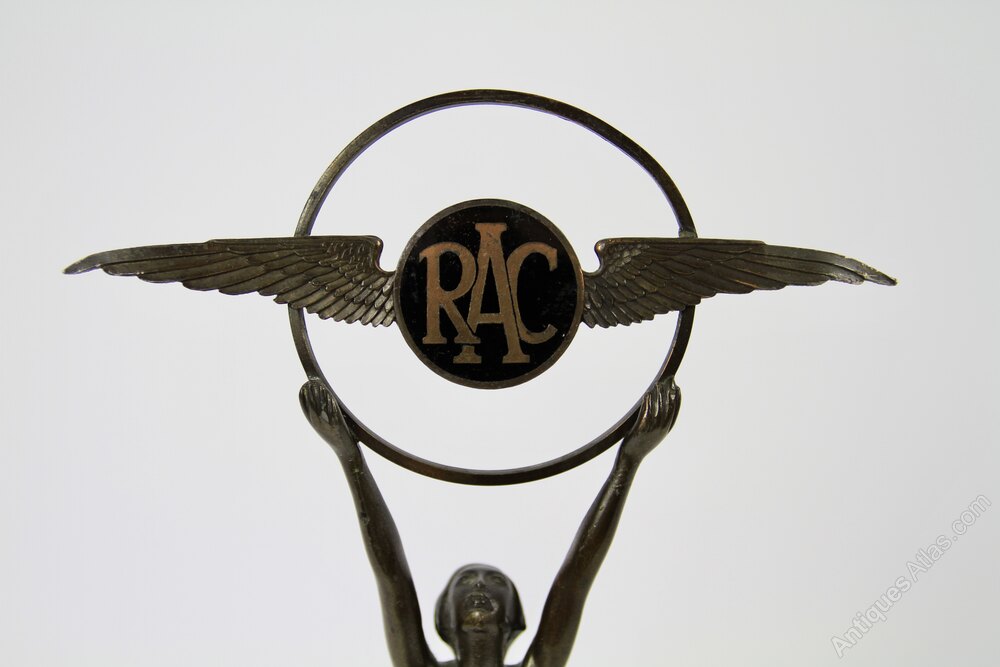 Bronze Lady Holding a hoop. with Winged silver plated & Enamel RAC Badge