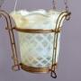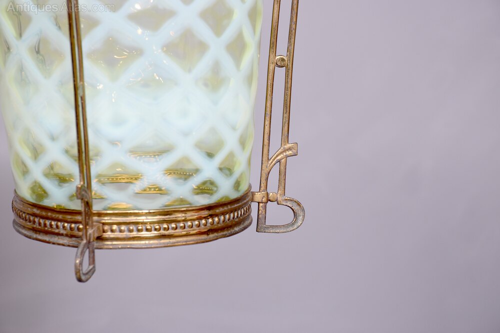 Rare Art Nouveau Vaseline Glass & Brass Circular Light Fitti