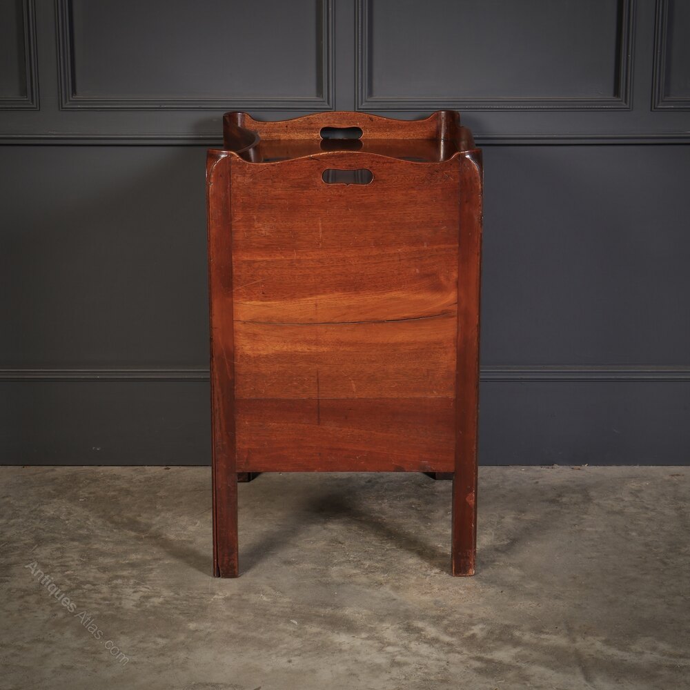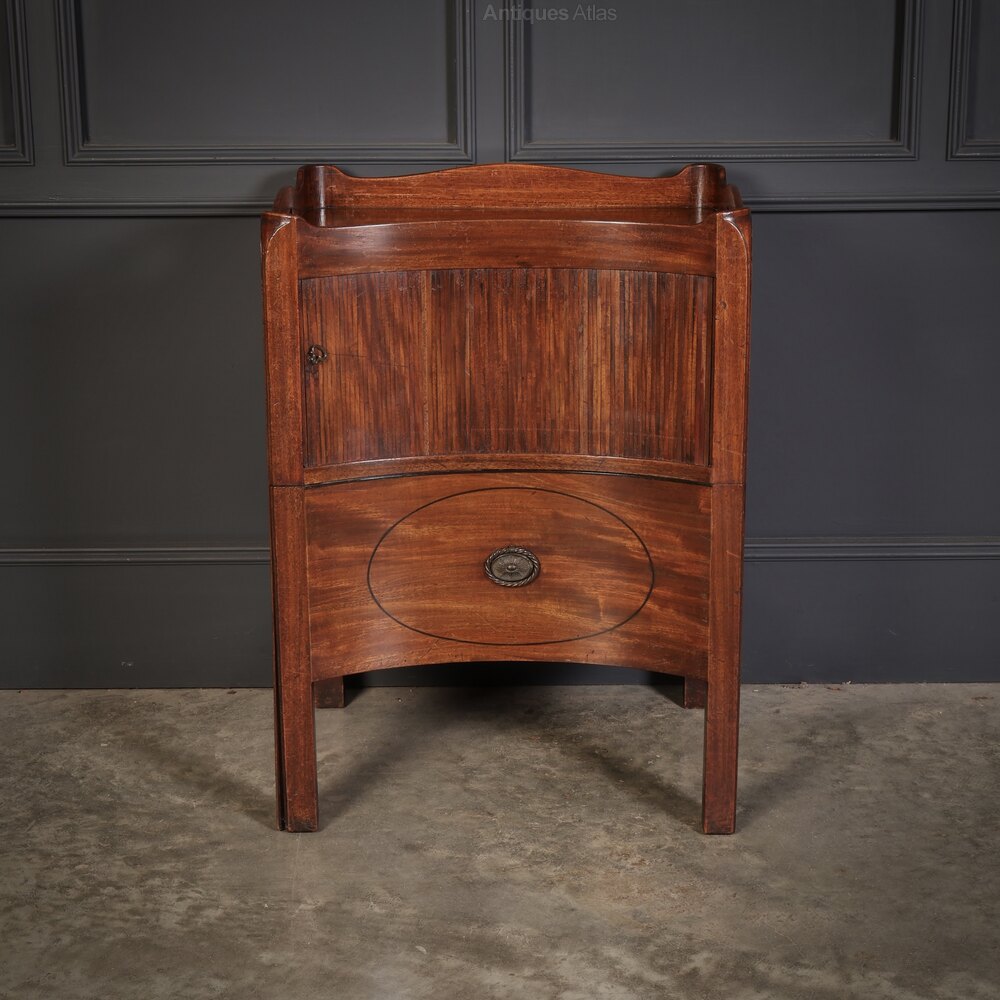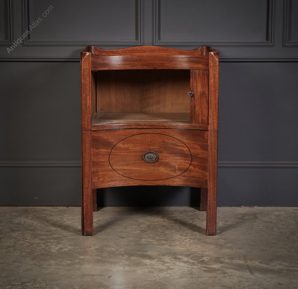 A fine and rare George III concave-front mahogany nightstand of exceptional quality and elegant form.