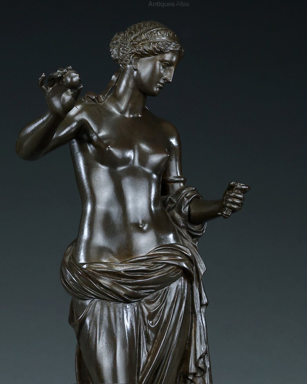 Rare good size 19th century patinated bronze full length library statue of the 'Vénus d'Arles' after the antique original found in 1651 in the Roman Theatre in Arles and now housed in the Louvre in Paris. Fine quality casting in the manner of Barbedienne with the Reduction Merchanique seal of Achille Collas. French, circa 1890.