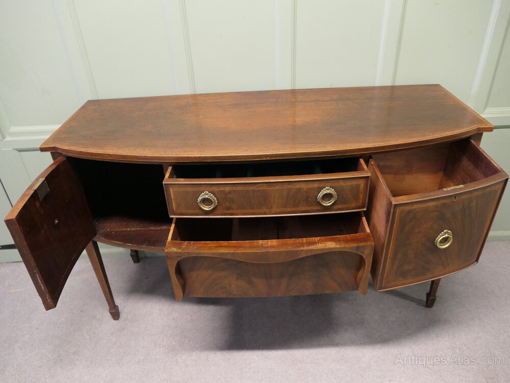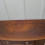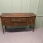 This is a lovely old piece, the flame veneers have a decorative string inlay, on the top and front, the dresser has 2 centre drawers, and a cupboard at one side with a matching cellarette drawer at the other