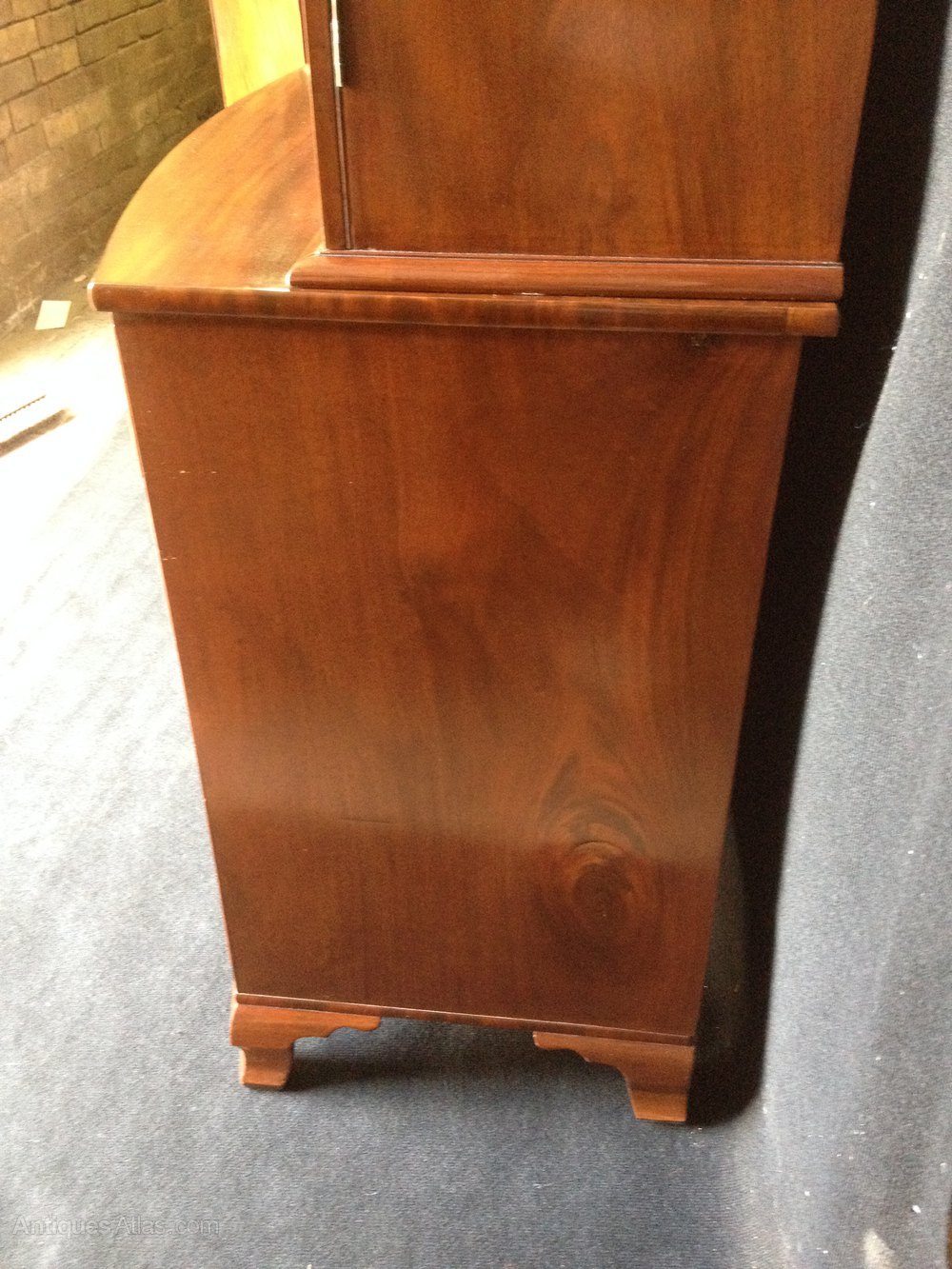 Maple & Co bow front bookcase on cabinet
