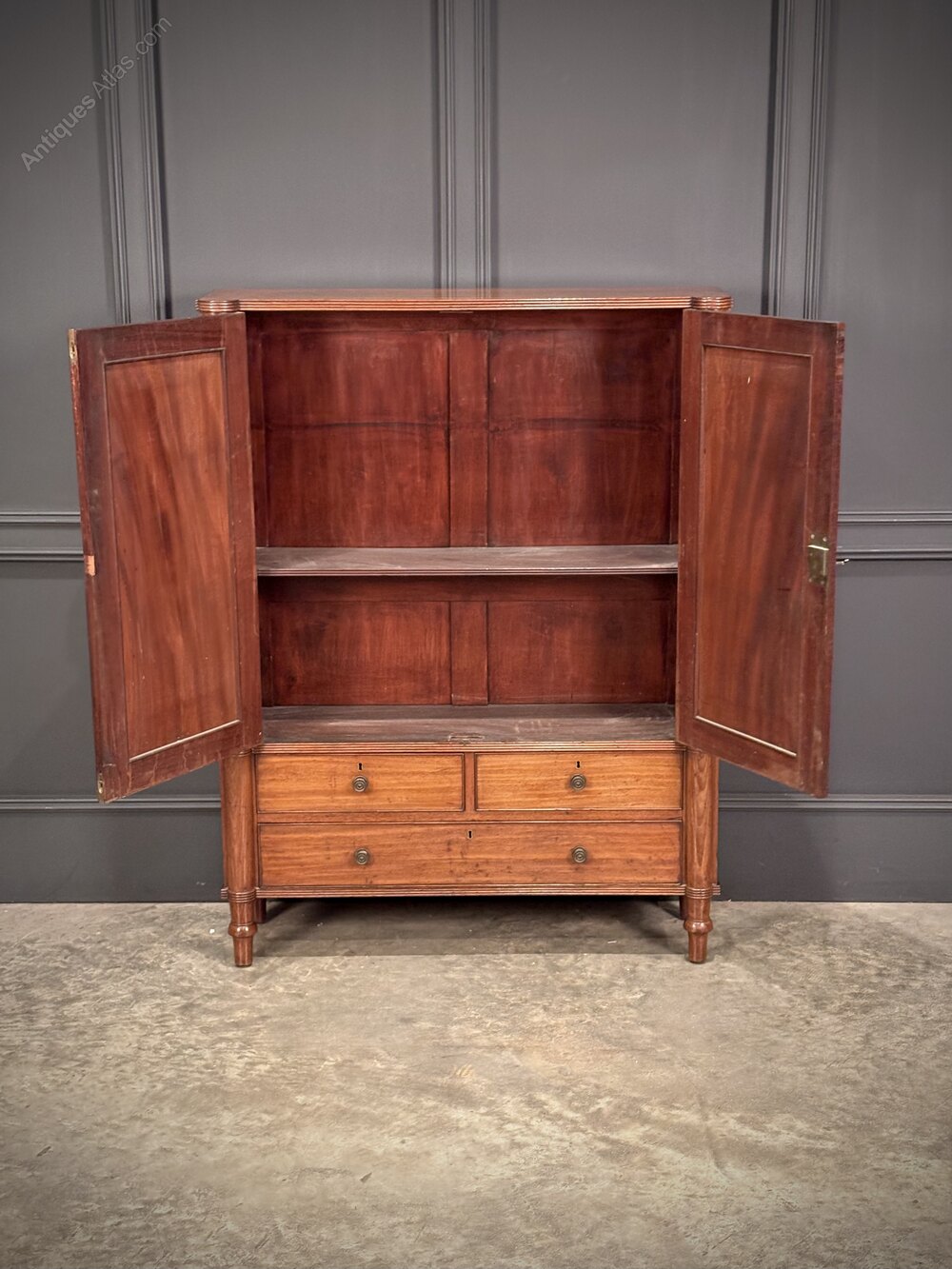 Featuring a pair of well-proportioned panelled doors, complete with a working lock and key, opening to reveal a single shelf inside.