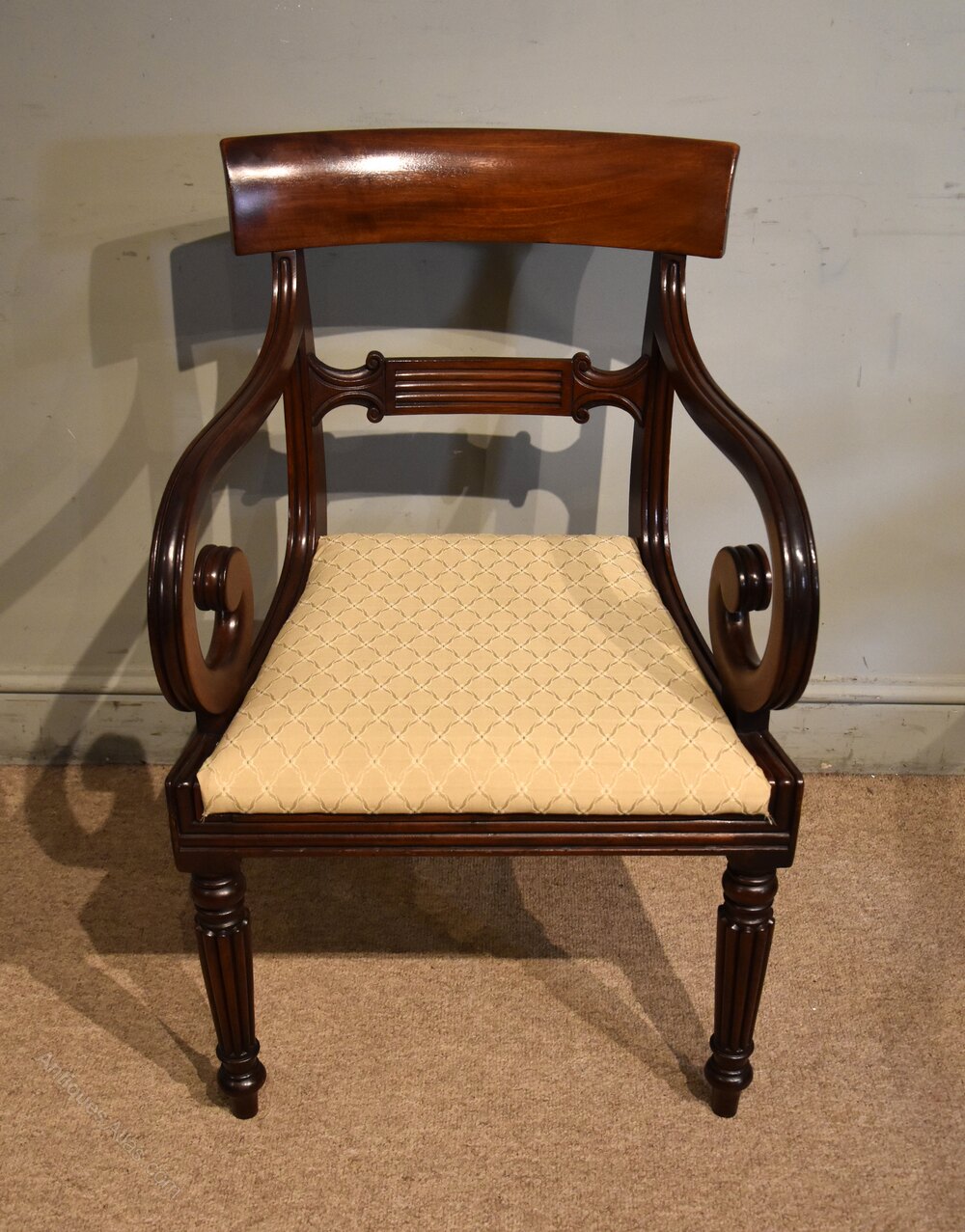 Regency Period Mahogany Scroll Armchair