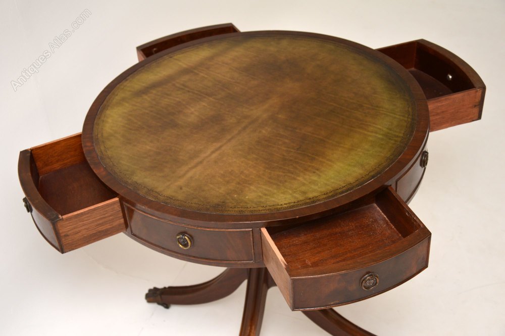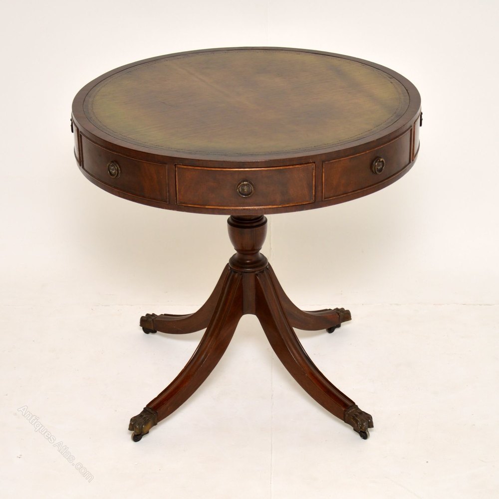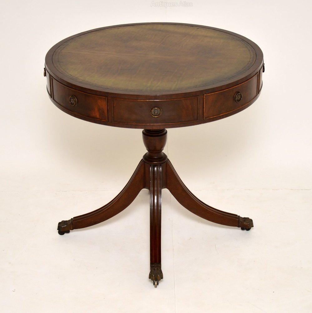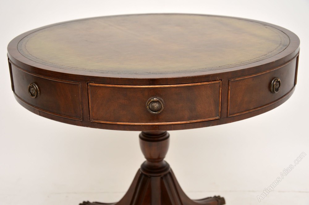 Antique Regency style leather top mahogany drum table in good condition & dating from the 1950’s period.