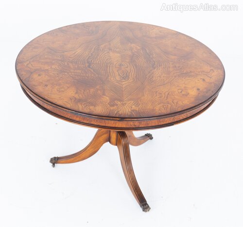 A piece of considerable decorative presence, uniting classical Regency design with the natural beauty and rarity of olive wood, making it both a functional dining table and a statement of refined taste.