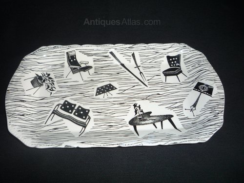 A very rare long shallow serving dish in the iconic 1950's Homemaker design by Enid Seeney for Ridgway. Unusual serrated and impressed detail to the edges.In excellent condition with no damage. A few manufacturer unglazed kiln spots to the back, rest points during firing.