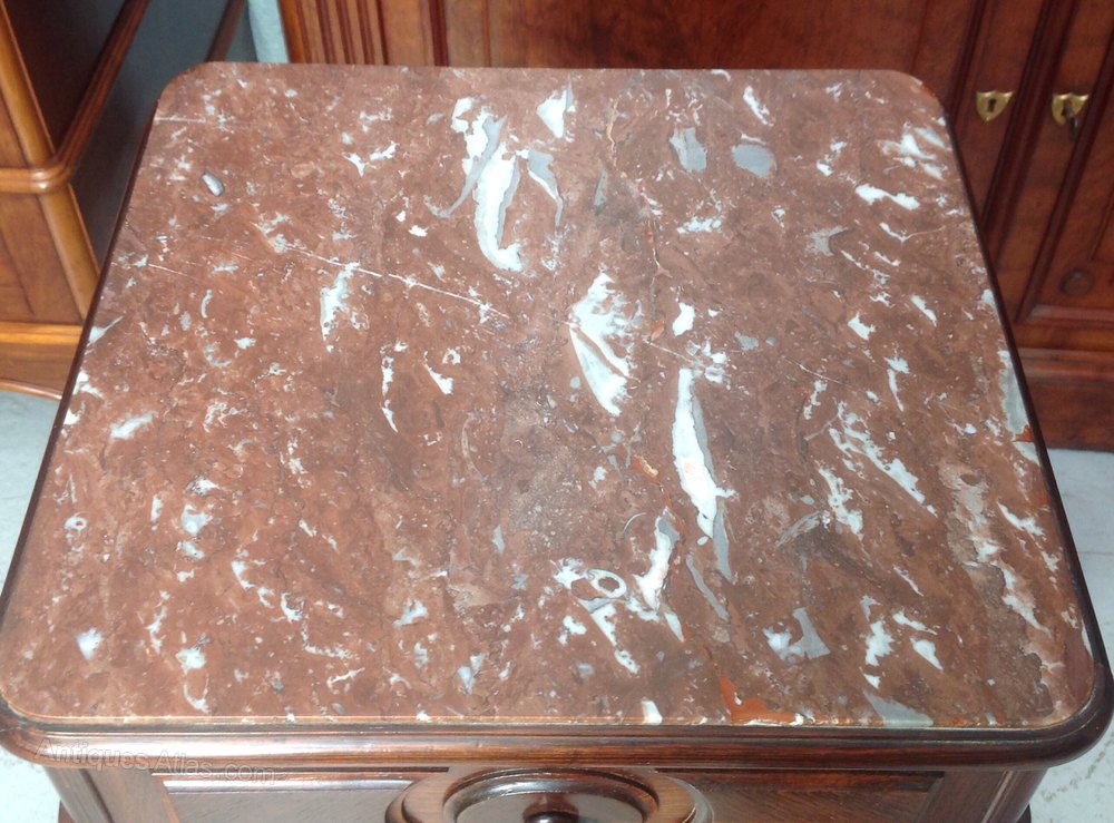 Antique c.1910 Pair of Red Walnut Bedside Tables