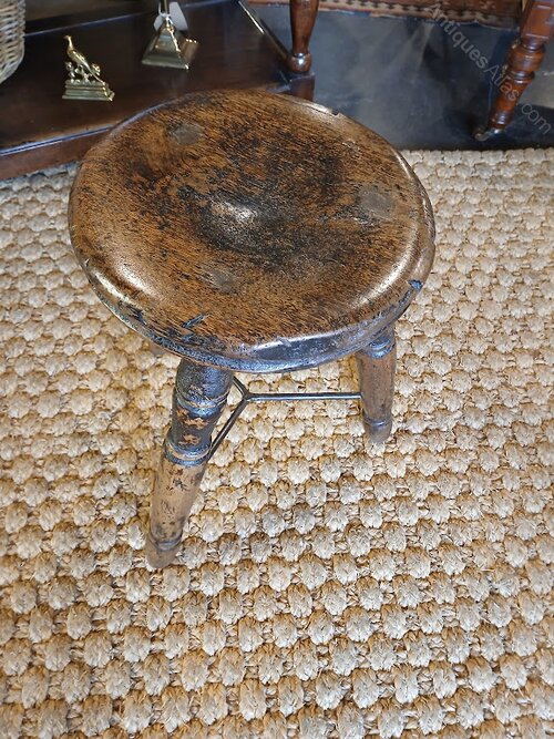 Condition Lovely old stool, characterful condition with a nice well polished patina throughout.Traces of original paint etc.