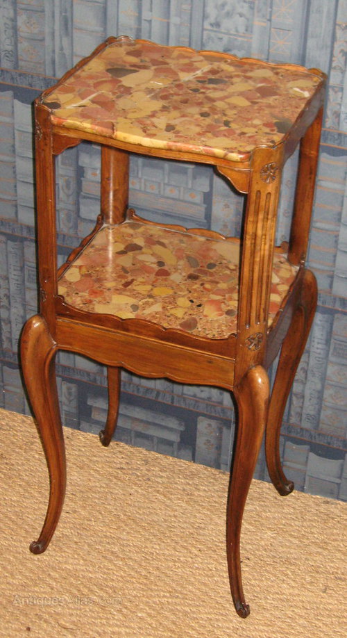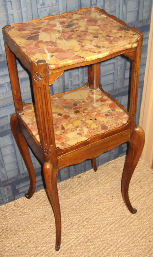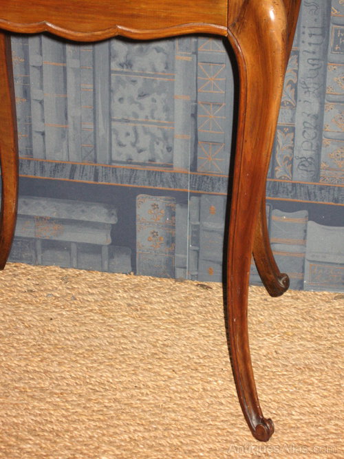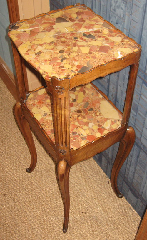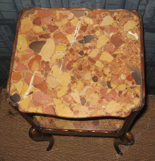 A wonderful quality side table or bedside table by the Edinburgh firm of Morrison and co. The table is in the design of French Chippendale, with fine elegant cabriole legs, serpentine edges, and carved flowers and reeding. The table is in walnut with the use of of unusual stone inserts of either breccia or scagliola. The whole is of the best quality of the period and also in the most flawless condition. C.1890.