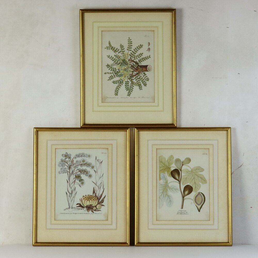 A set of three original hand-coloured copperplate engravings from Ferdinand Bernhard Vietz’s "Icones Plantarum", published between 1800 - 1822, presented in gilt frames & ready to hang.