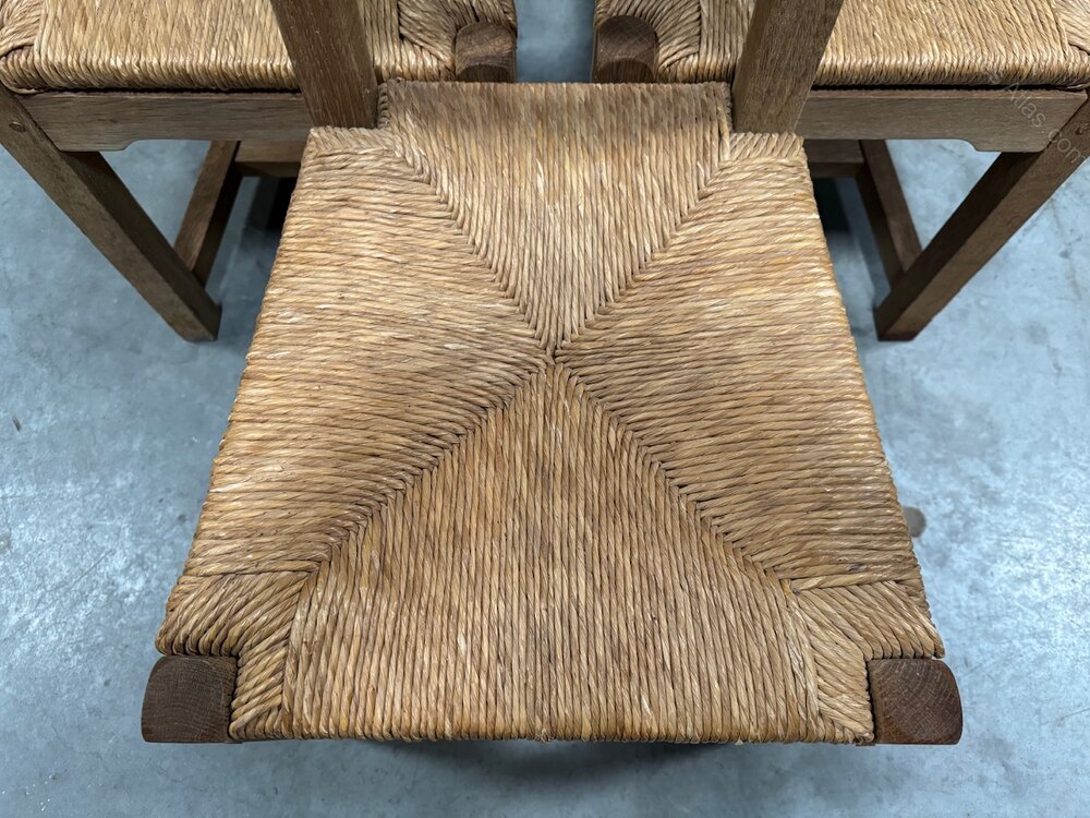 A lovely set of 6 French Oak Dining Chairs, Farmhouse style and would look great around a farmhouse table. All rush seats in good condition and the chairs are strong and sturdy.