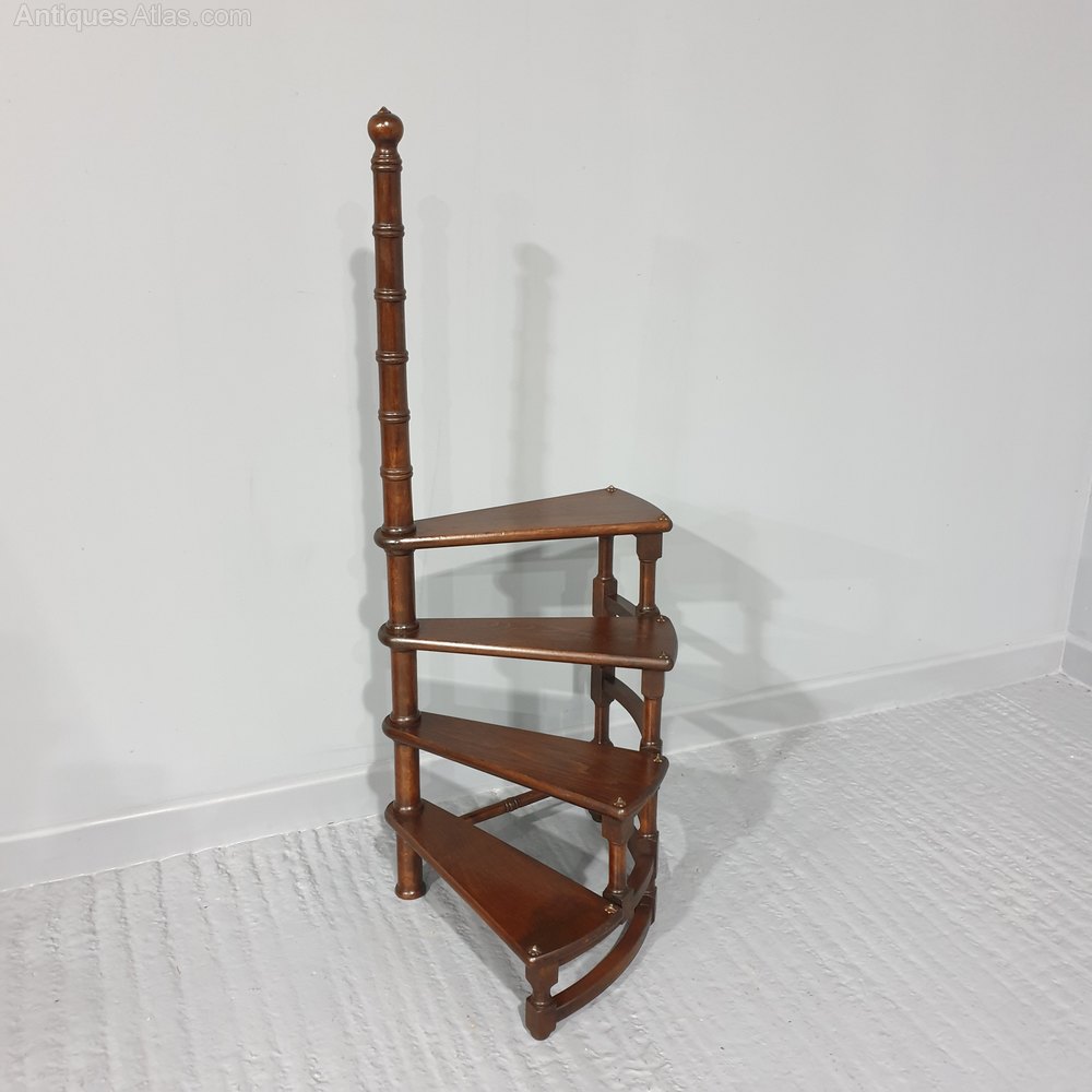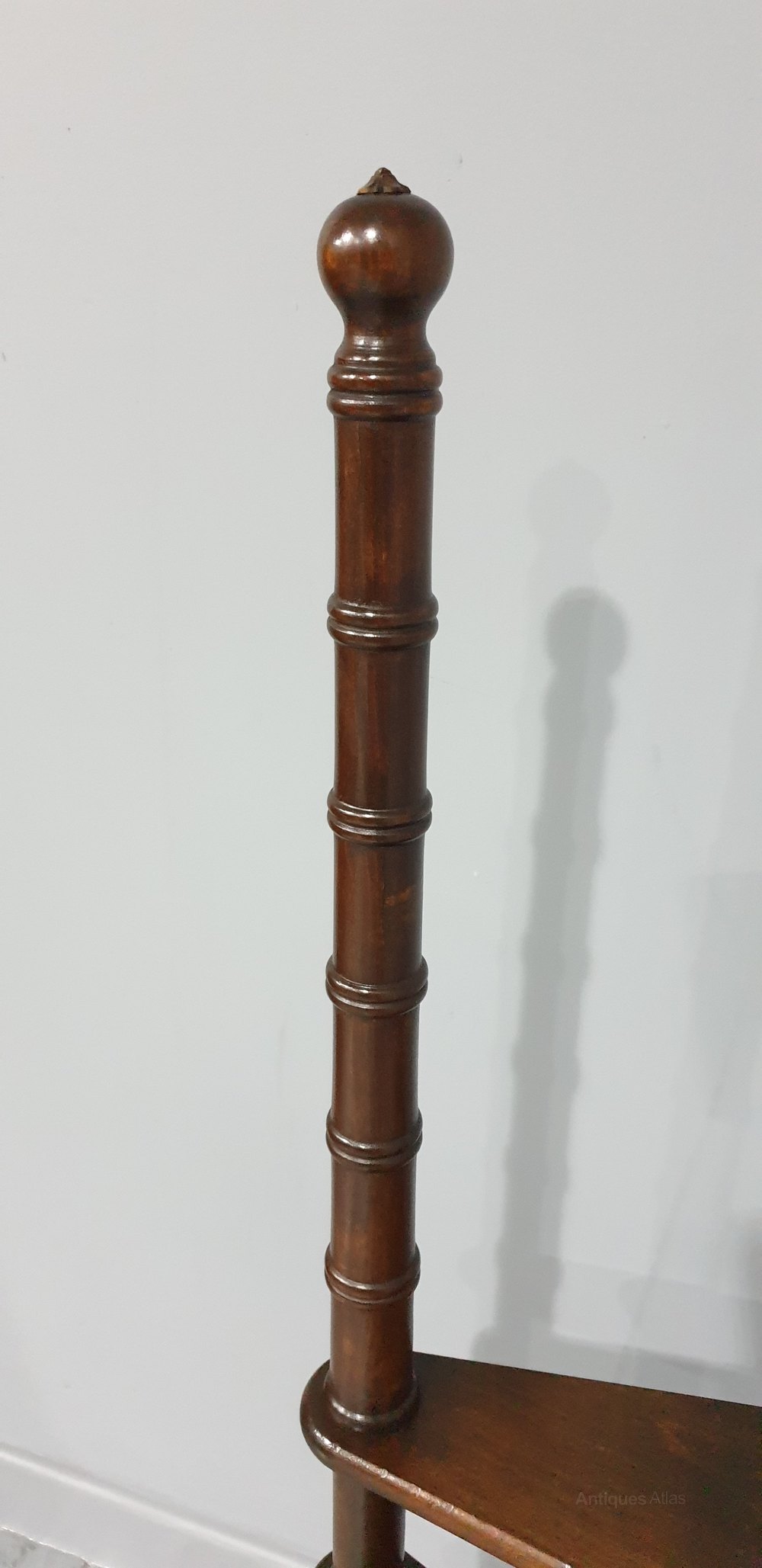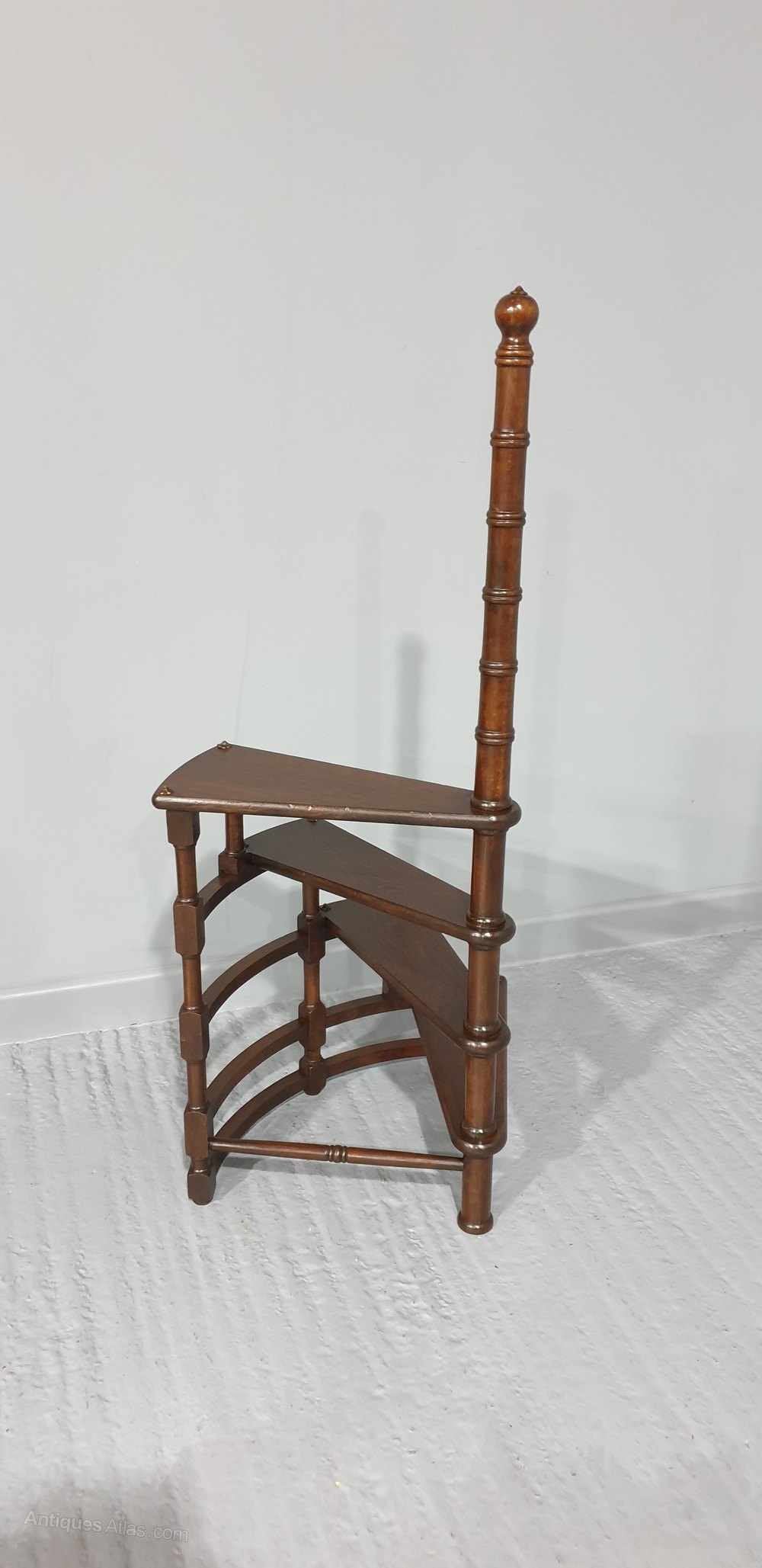 Set of beech four rung library steps with brass detailing, excellent colour and condition.