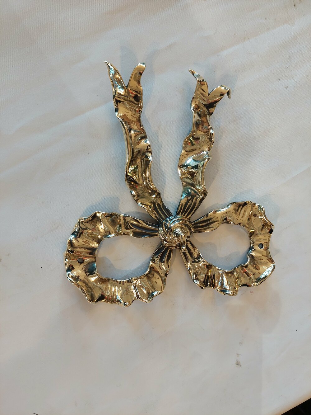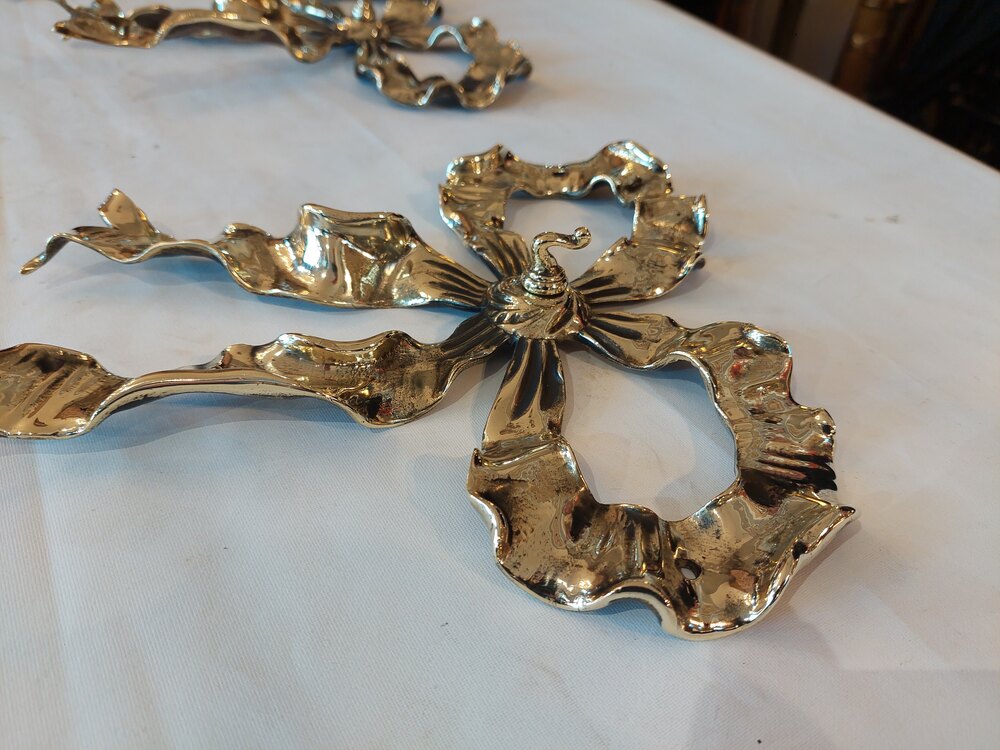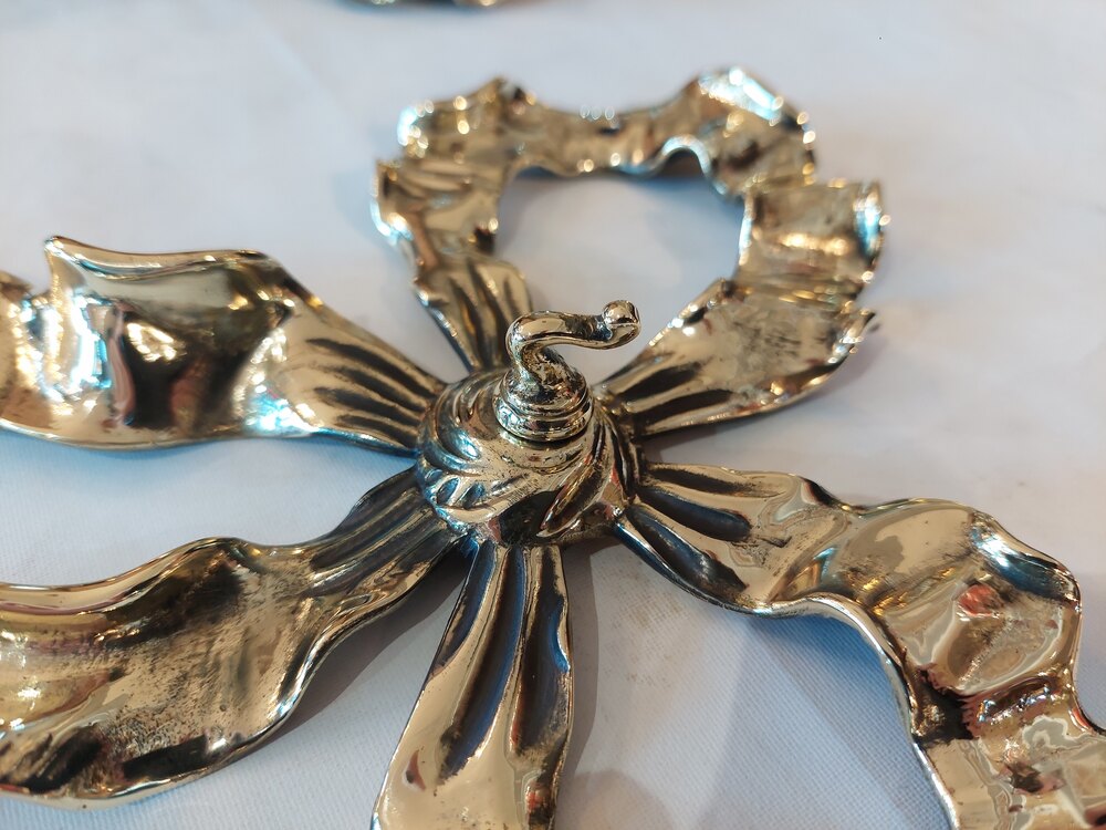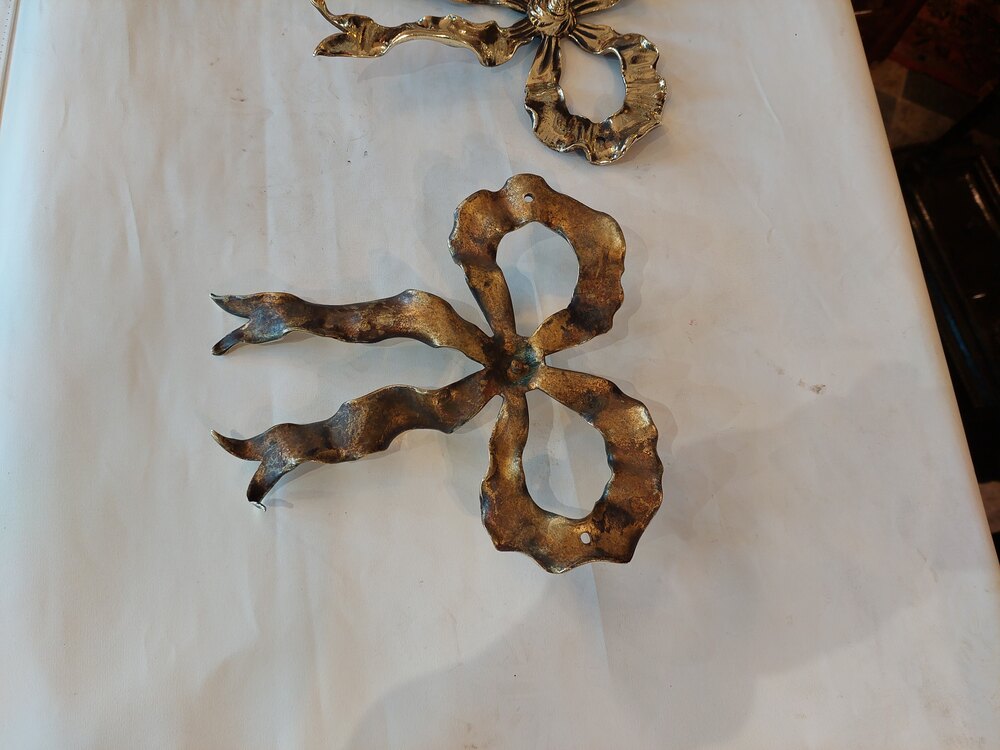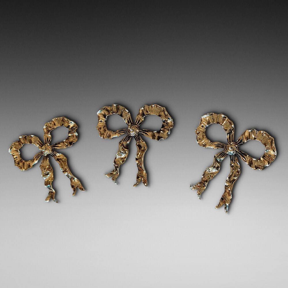 Set of 3 Ribbon Backed Early 20thC Brass Wall Applications with Hooks - 8"w x 8"h