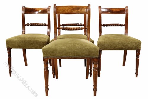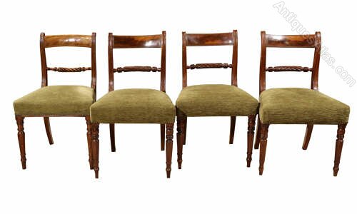 A set of 4 George III mahogany rope twist bar back dining chairs in excellent condition on finely turned front legs.
