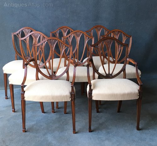 Set Of 6 + 2 Mahogany Hepplewhite Style Shield back