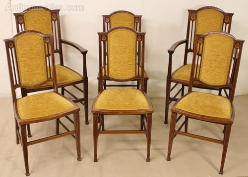 Set of 6 Inlaid Mahogany Art Nouveau Period Chairs