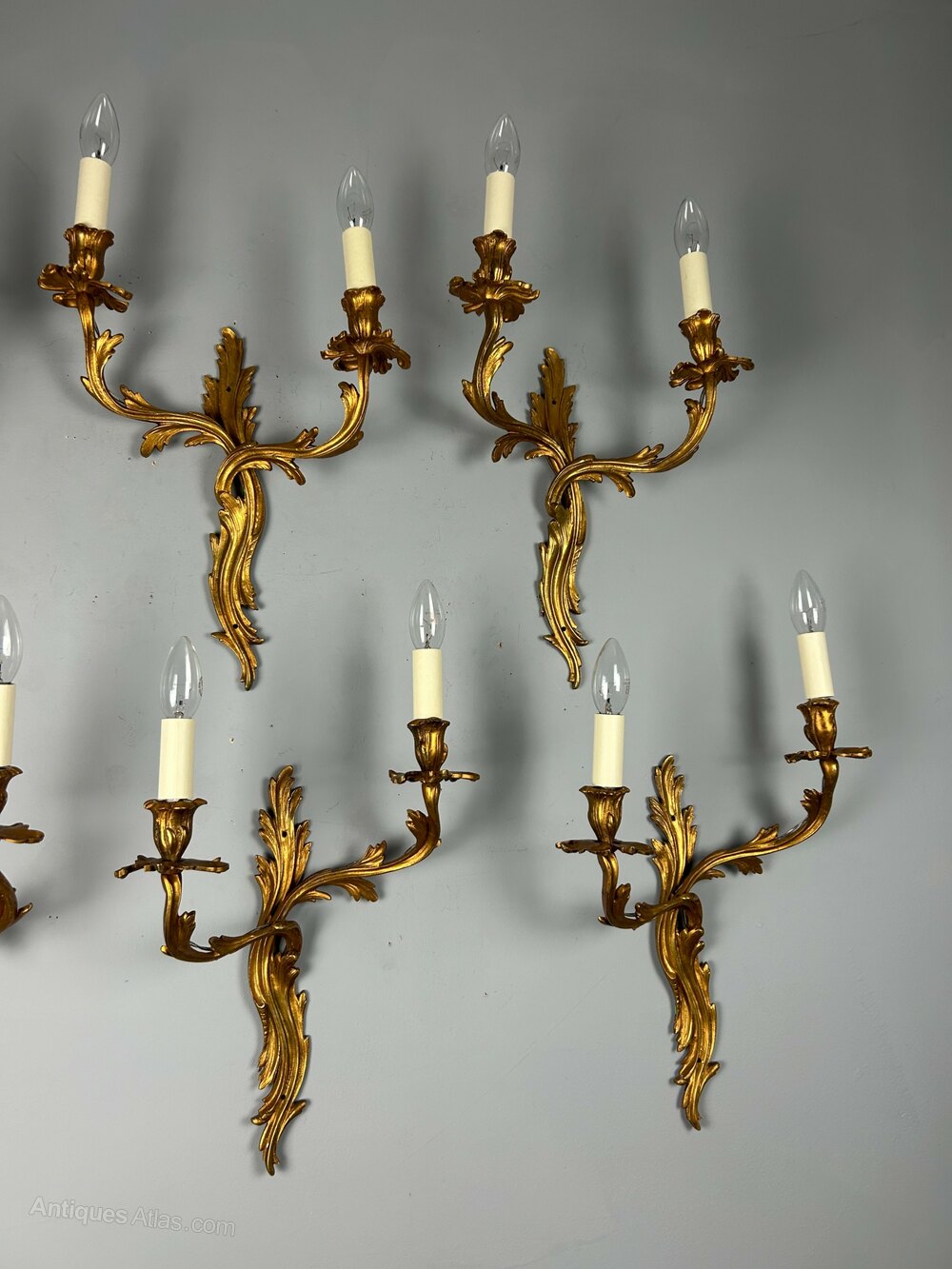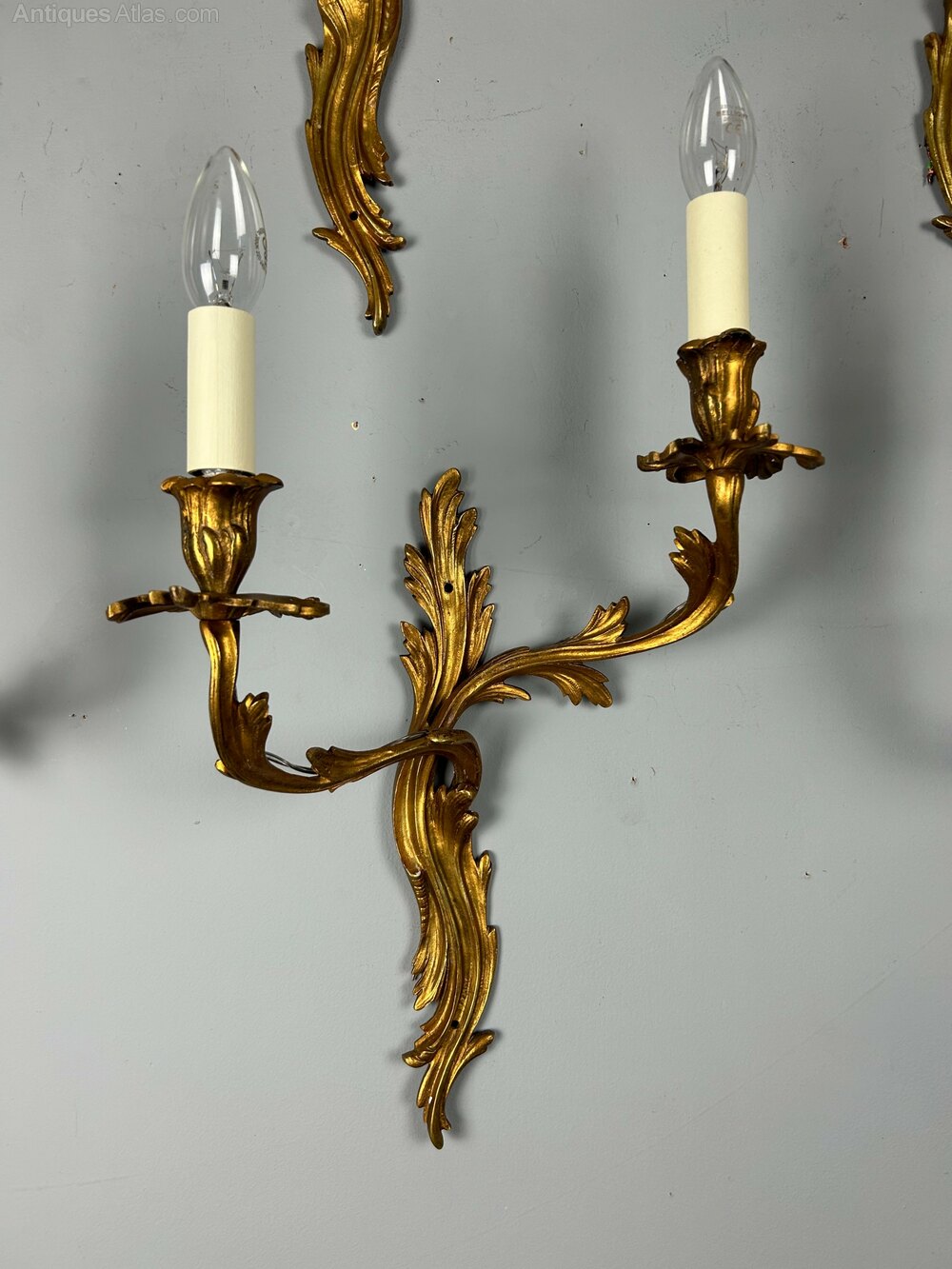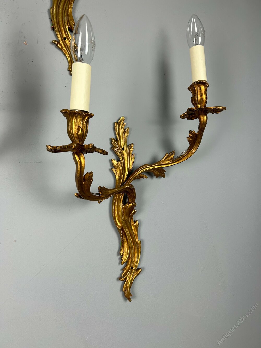 Pair French Gilt Brass Early 20th C.Wall Lights