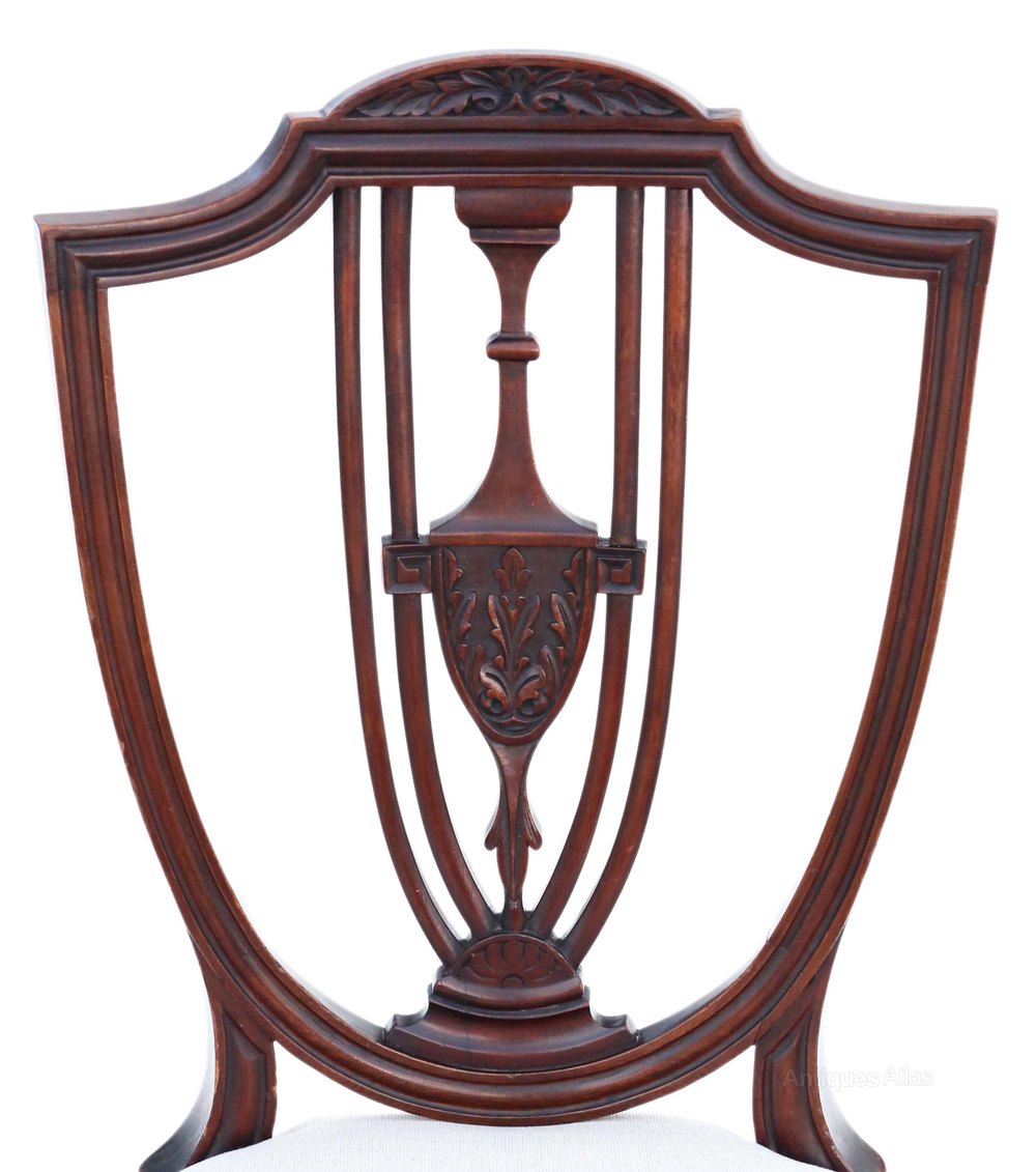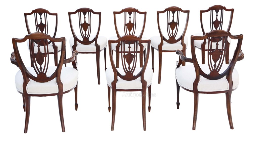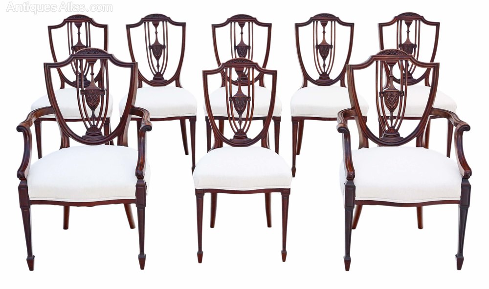 Antique fine quality set of 8 (6+2) 19th Century mahogany dining chairs shield back C1895.