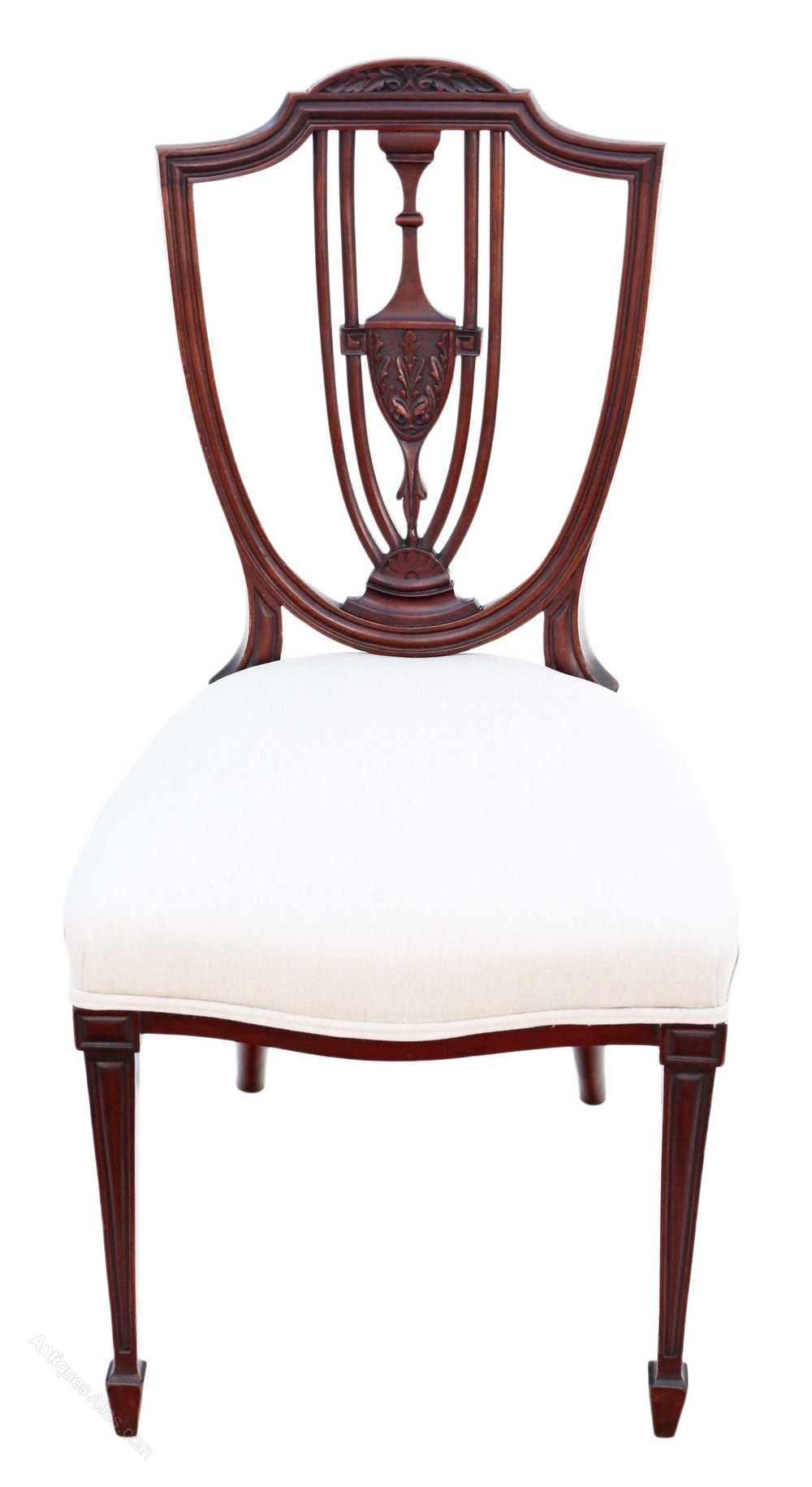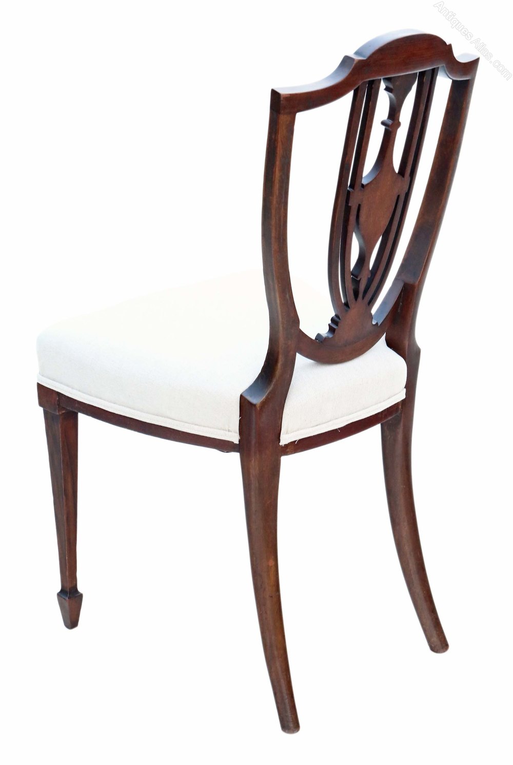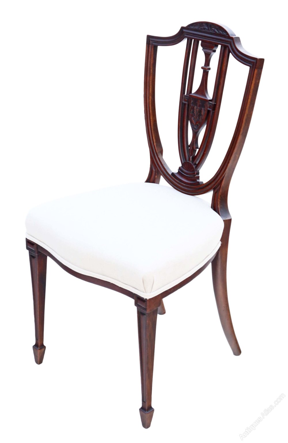New, professional upholstery. Lovely shield back design.