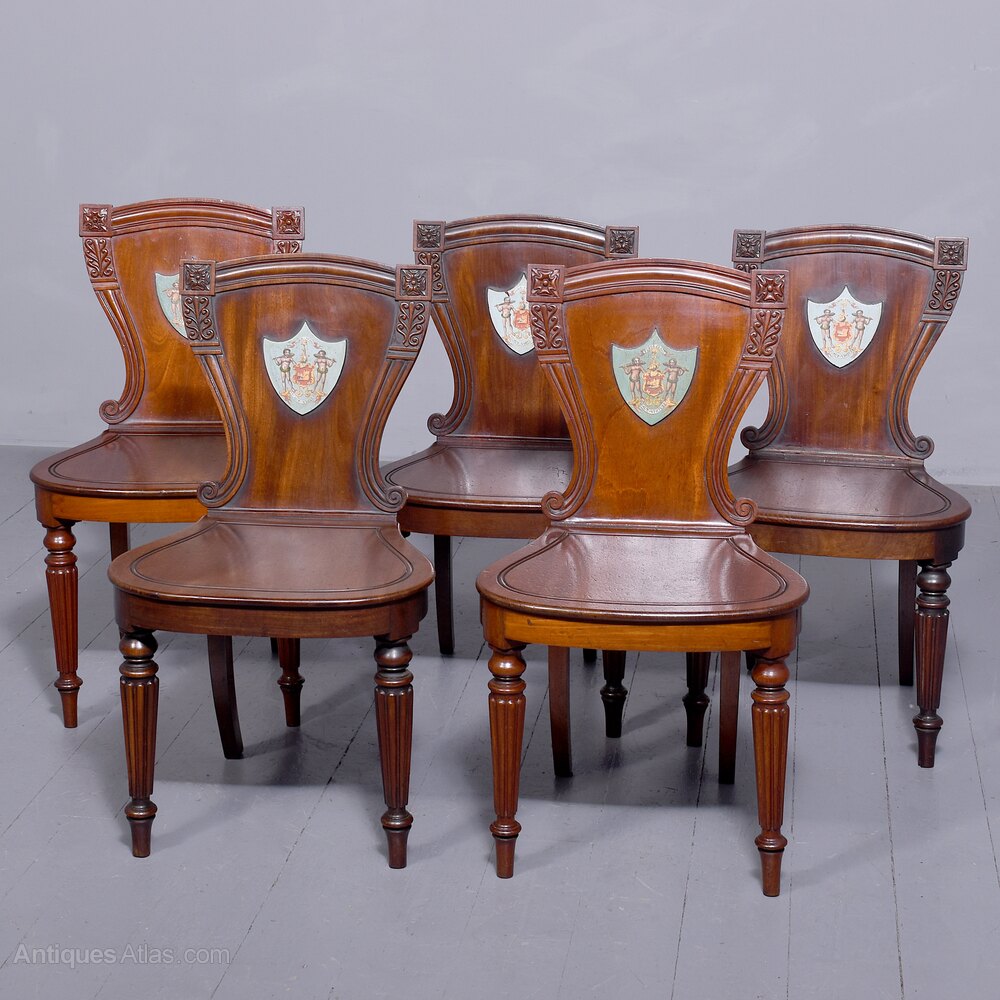 Set of Five George IV Heraldic Mahogany Hall Chair