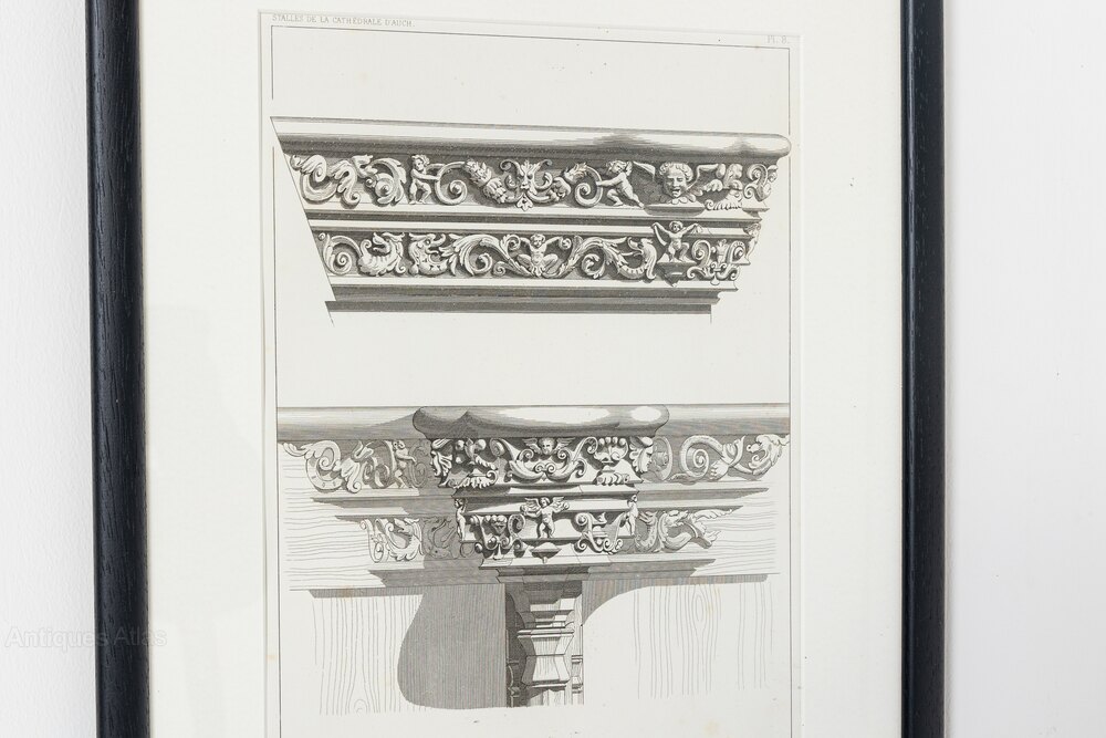 Set of Four 19th Century Framed Engravings of Cathedral d'Auch - France.