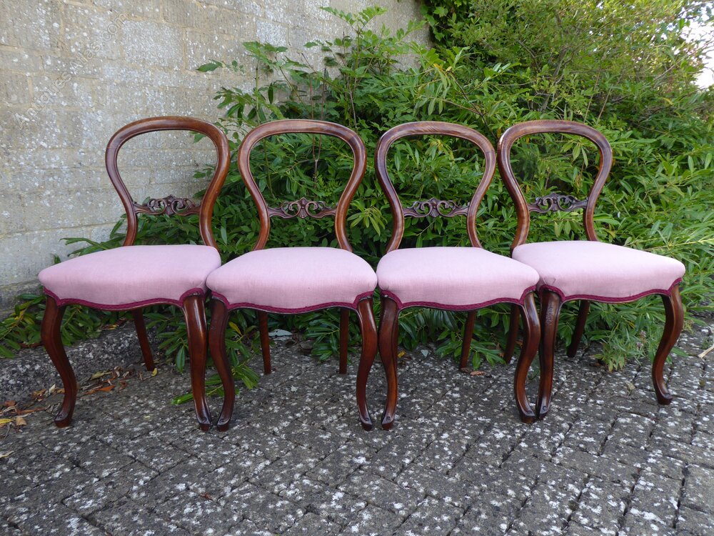 Set Of Four Walnut Balloon Back Chairs Circa 1880
