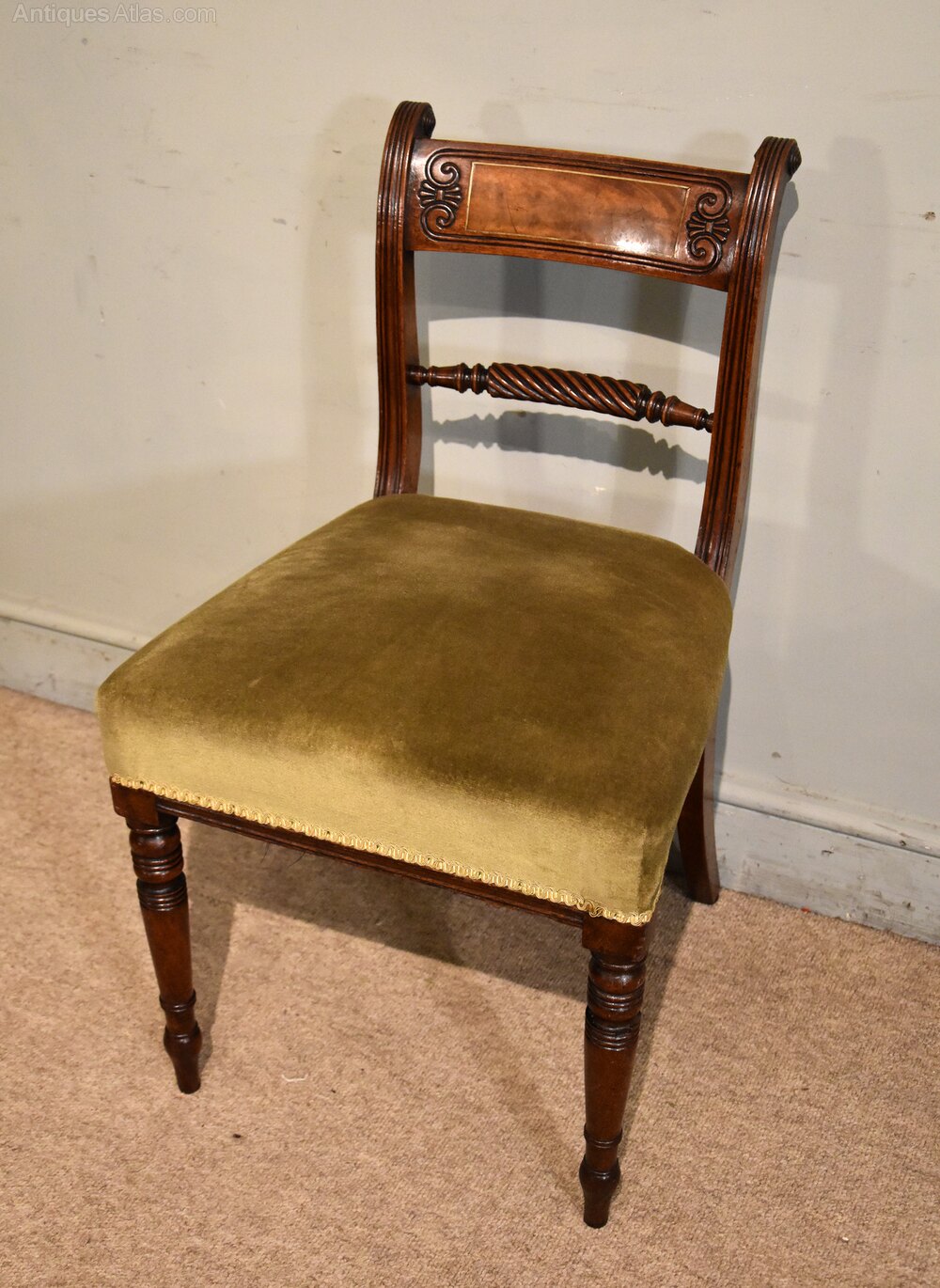 Set of six Regency mahogany rope back dining chairs