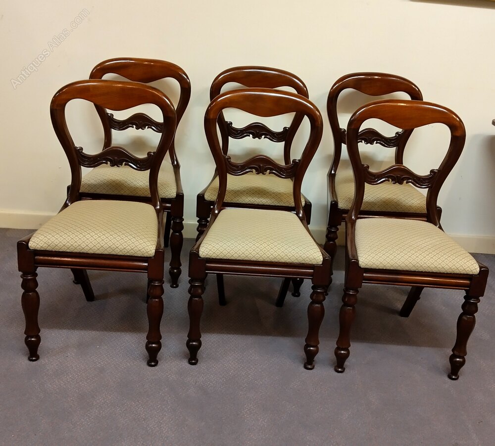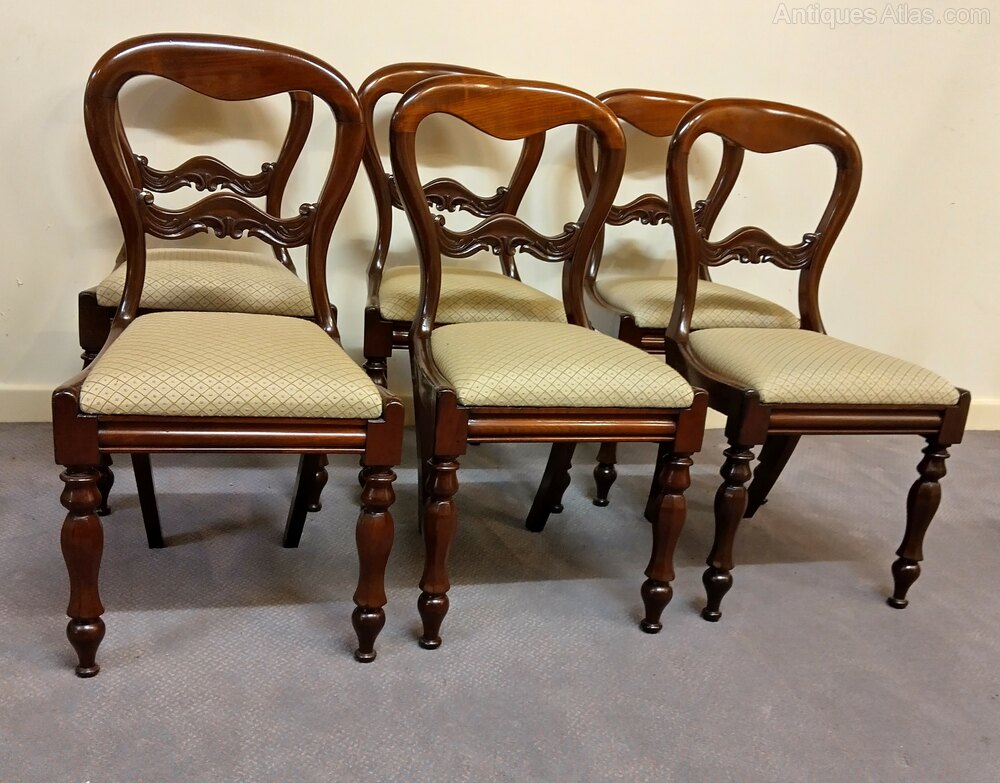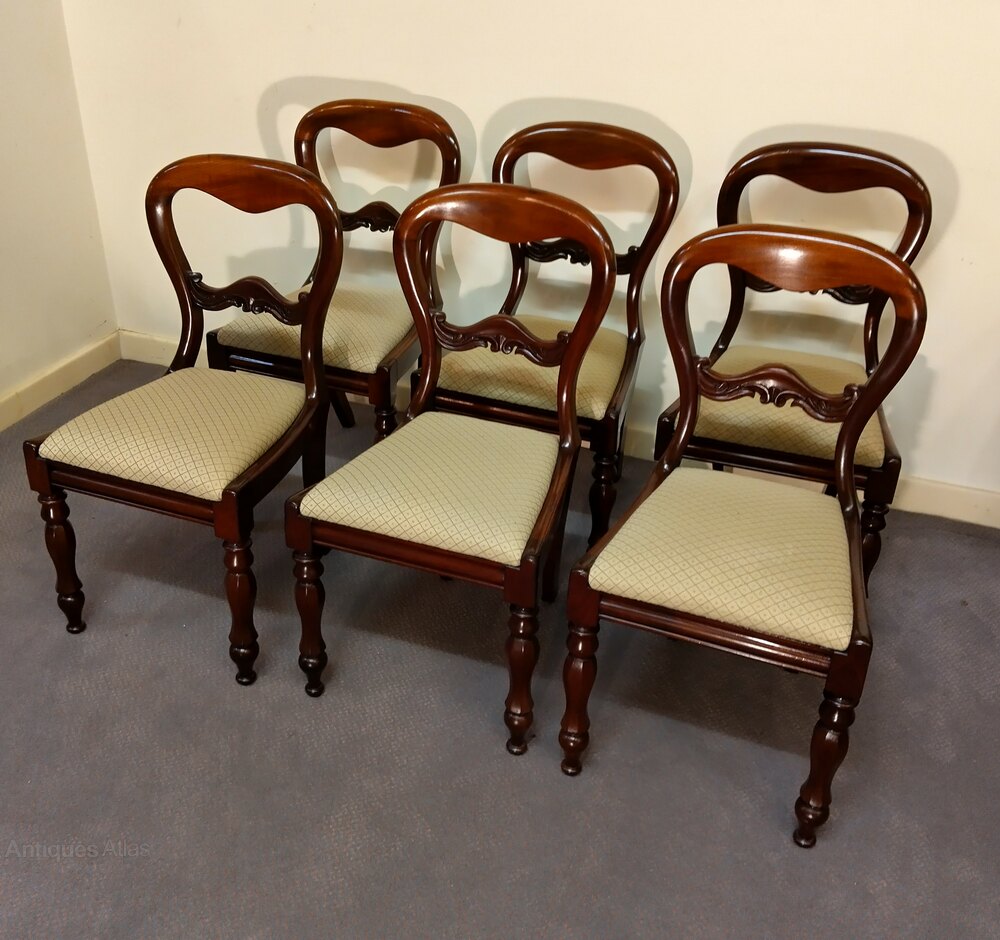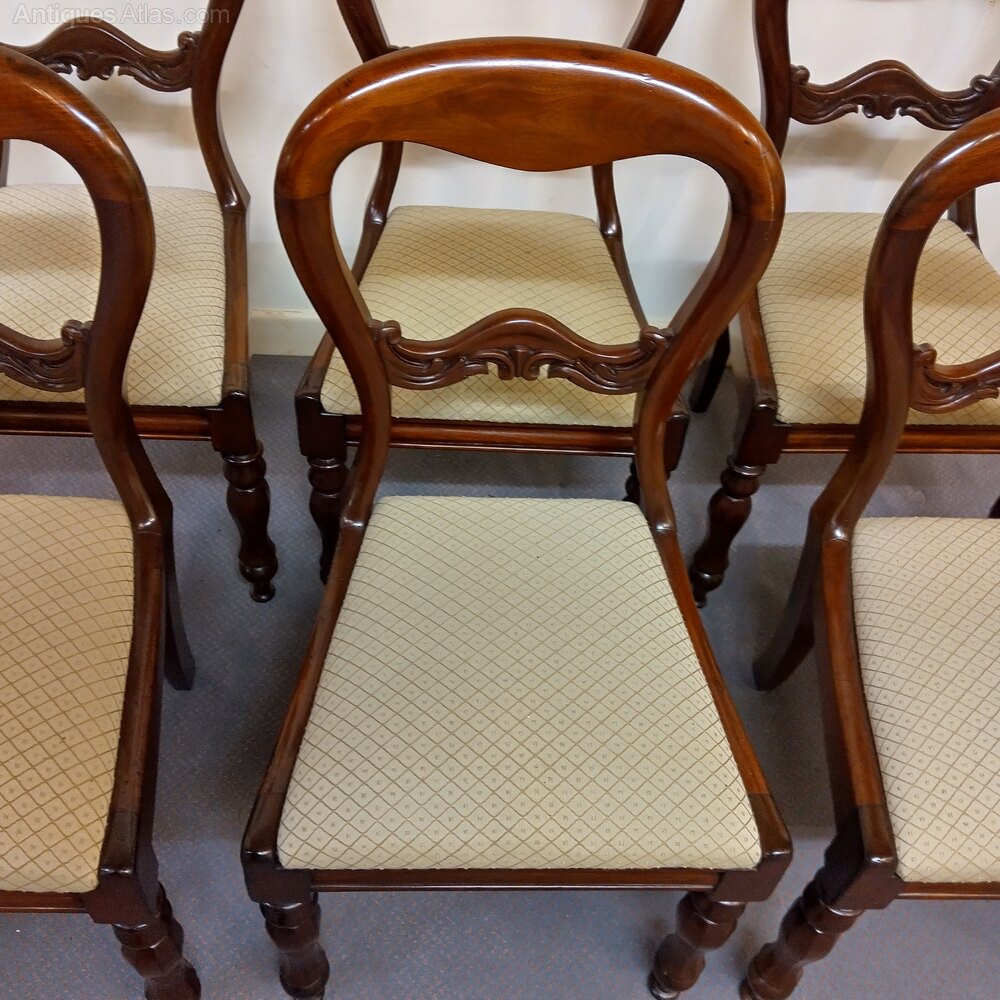 Six antique Victorian balloon back dining chairs