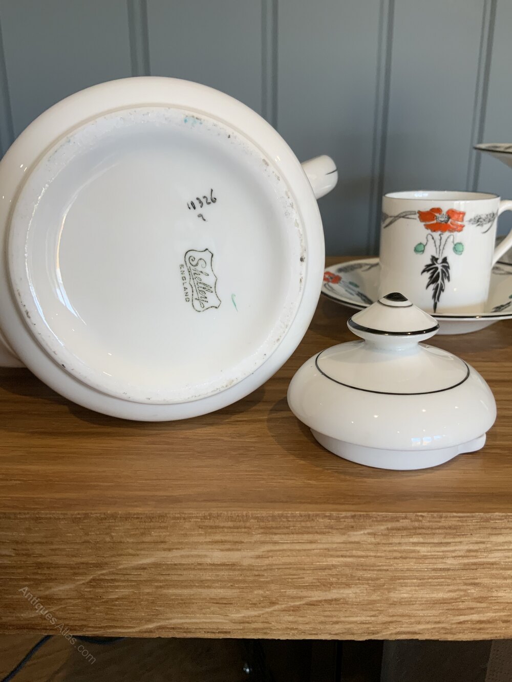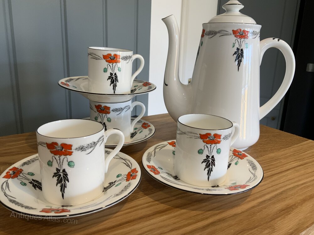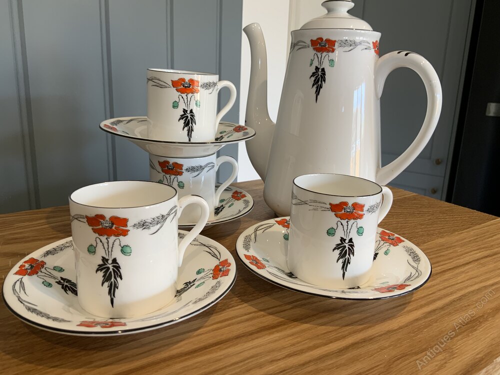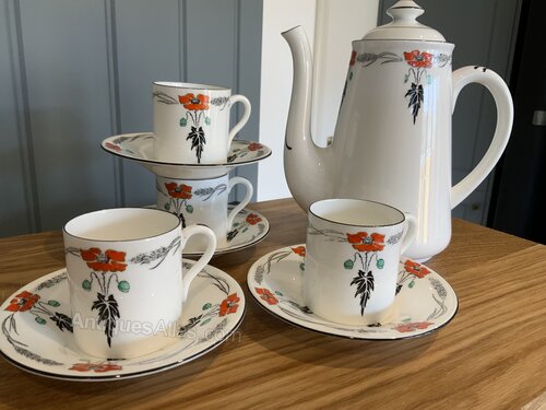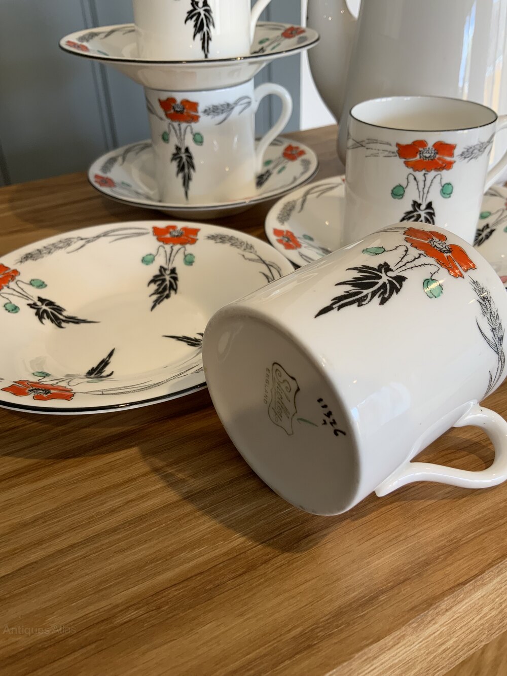 Shelley Art Deco Coffee Pot and Coffee Cans - Hand Painted Poppies & Wheat 11326
