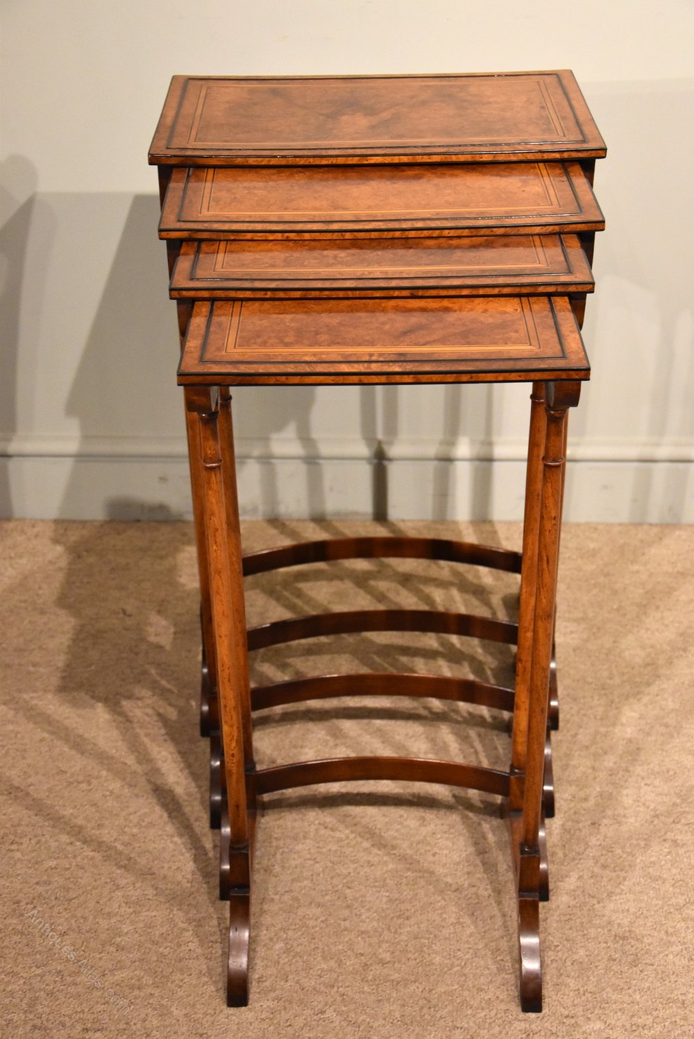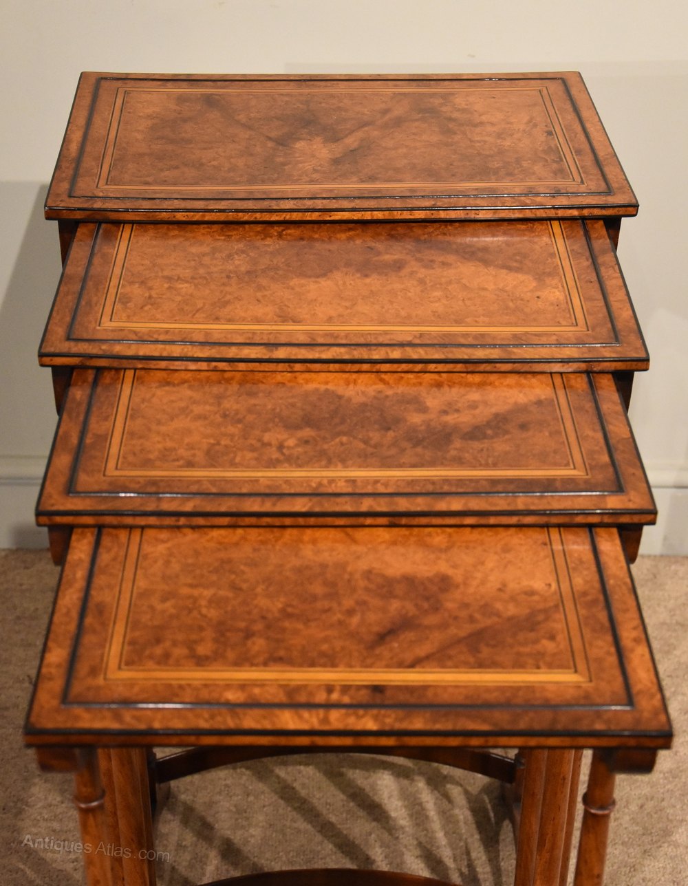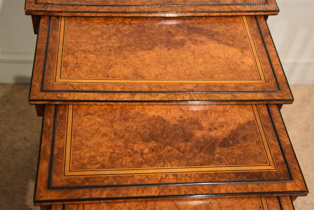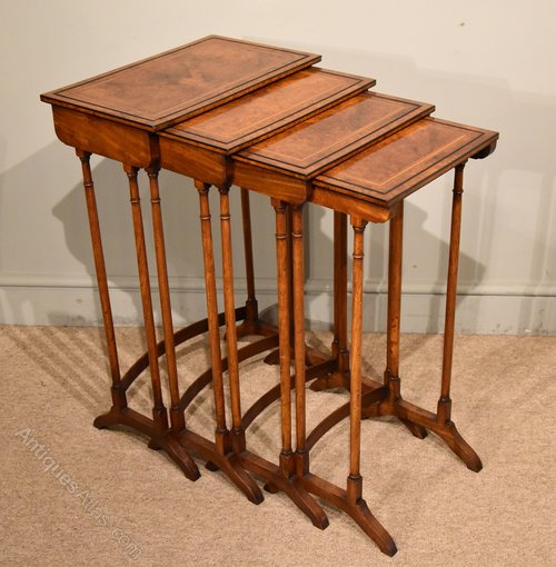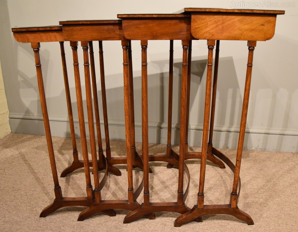 Sheraton Period Amboyna Inlaid Nest of Tables